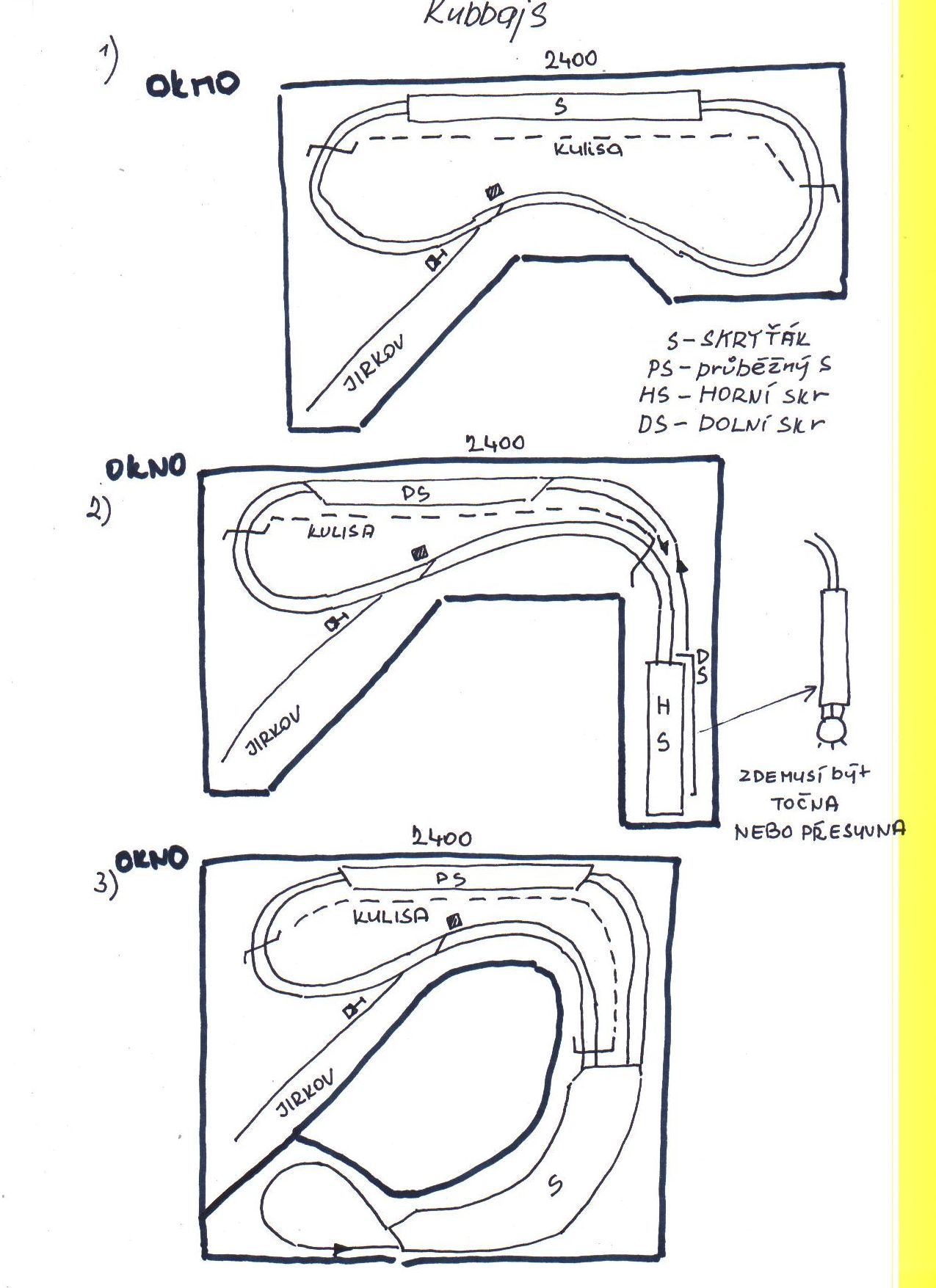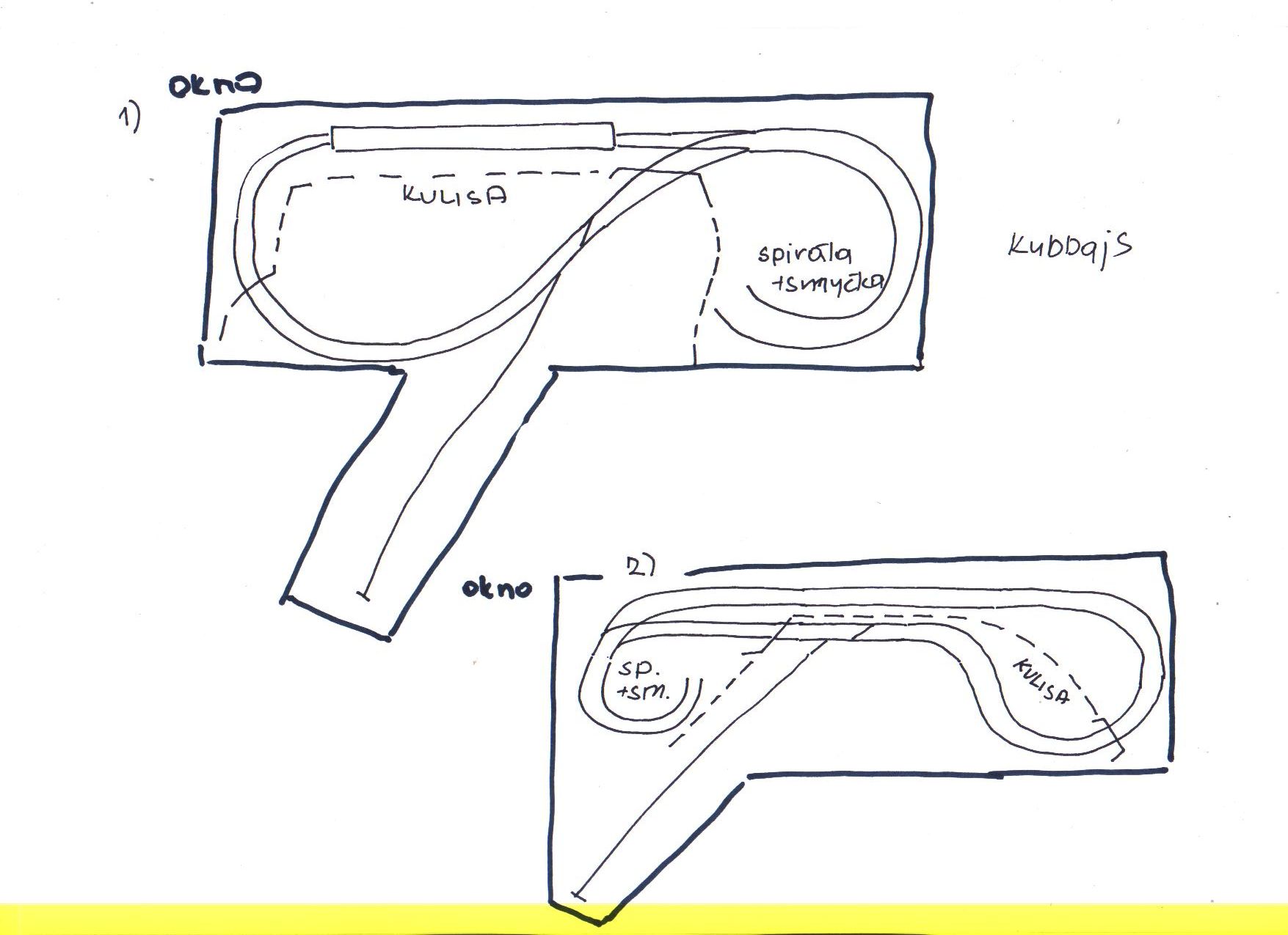 Nevím jestli je to chyba, ale než začnu stavět chci si být jistej, že to je přesně ono. Nechci zase už skoro hotové kolejiště bourat a předělávat. Všechny Milanovo plánky jsou skvělý, ale pak mě napadne: co kdyby to bylo takhle nebo takhle. Zatím jsem nic lepšího než Milanovo plánky neviděl, tak se asi rozhodnu pro některý z nich. Jenže který že jo. Líběj se mi všechny.