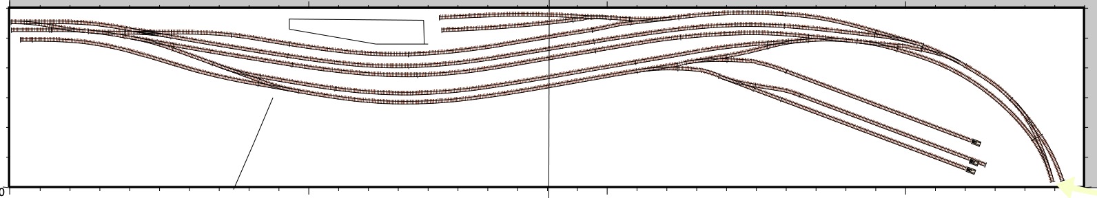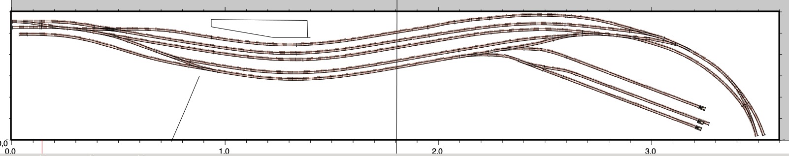 Děkuji Michalovi za podrobné vysvětlení a za čas, který tomu věnoval. Použiju tu variantu podle posledního schematu s kolejí 3B a kolejí 5 dopravní. Prodloužení koleje 3B na 80 cm není problém, místa tam mám dost, klidně může být i delší. Délky koleje 5A a 5B odpovídají požadavkům. Pokud jde o doplnění koleje 3A, z technického hlediska to není problém (viz obrázek, v tomhle je neocenitelný XtrackCAD, nahradit výhybku angličanem je záležitost několika minut). Ta kusá kolej by ale byla dost zakřivená. Jak už tady zaznělo, posun je pro mne méně atraktivní zábavou, nicméně pokud by to podstatně zvýšilo atraktivnost kolejiště, stojí to za úvahu.