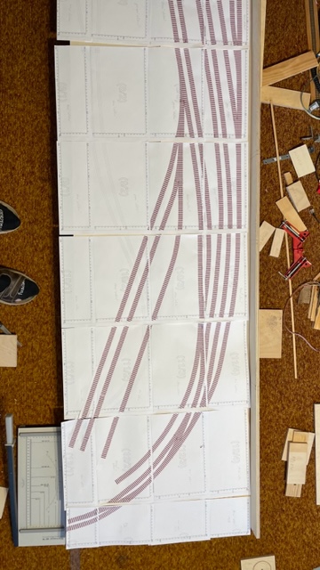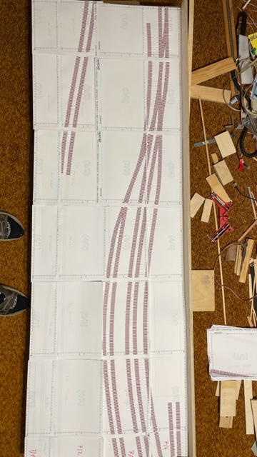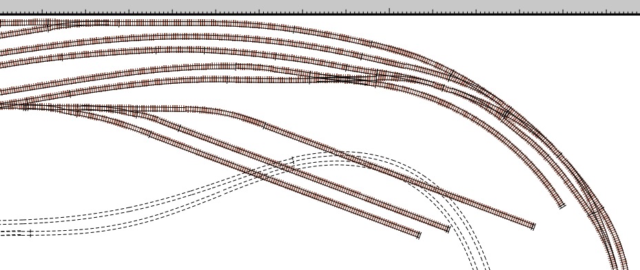 Tak tisk návrhu ve velikosti 1:1 mám vyřešen díky funkcím sw XTrackCAD. Je totiž možné použít přikaz k tisku, v němž lze zvolit požadované měřítko a velikost papíru (v mém případě A4). sw na obrazovce vyznačí rozdělení do jednotlivých listů. Pak stačí kliknutím vybrat které listy chci vytisknout. Mohu si tedy vytisknout jen listy pokrývající plochu kterou potřebuji, není nutný celoplošný velkoformátový tisk.