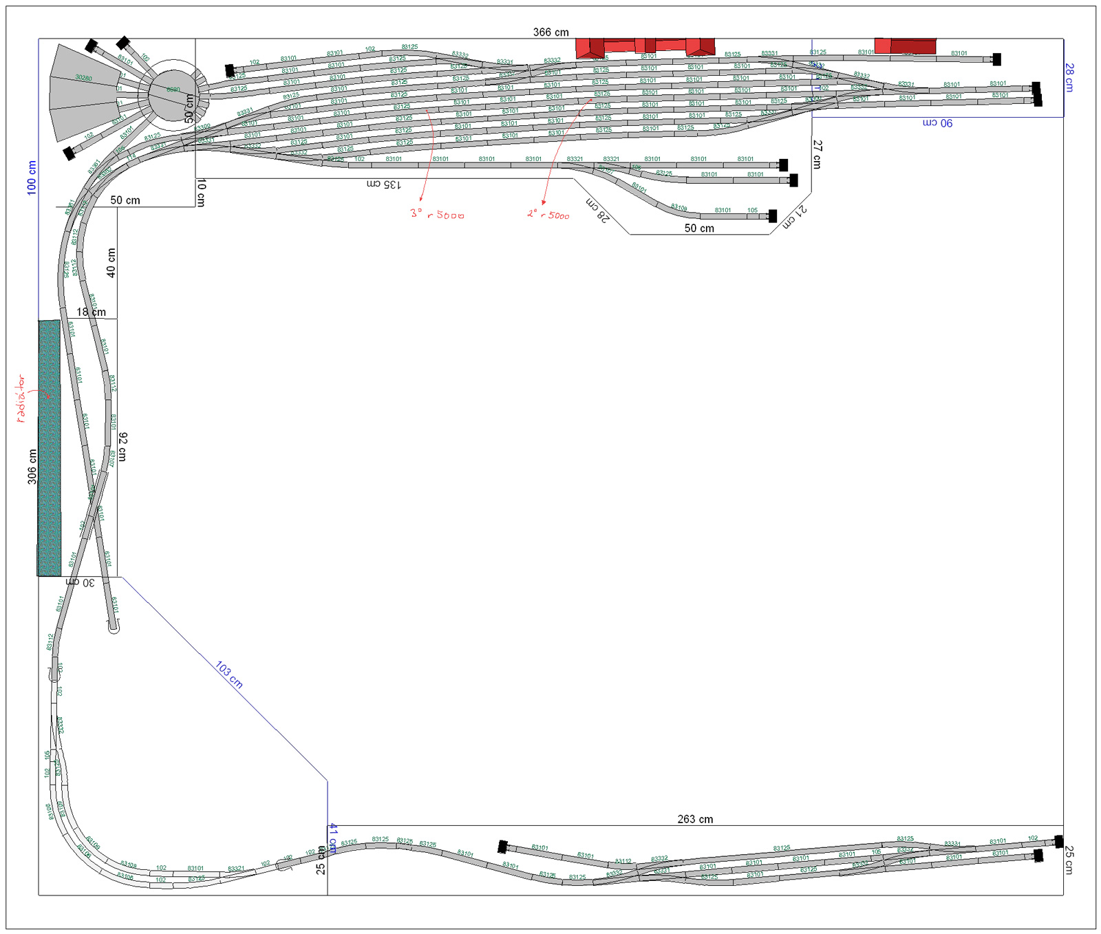 chameleon píše:jasně, není problém tam dát odvrat, nebo napojení zrušit. Já tam to napojení udělal z důvodu, že když bude manipulační před nádražní budovou zrovna blokovaná posunem ke skladu, tak aby byl "náhradní" přístup do depa.lajblt píše:Osobně mi přijde třetí napojení točny (do širé trati) zbytečné, když je tam vjezdová i výjezdová kolej z/na točnu.