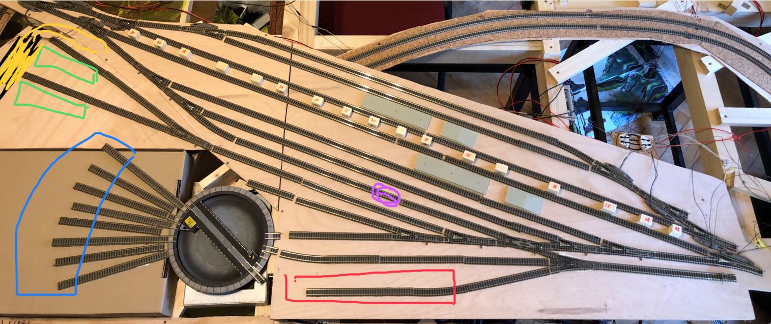 K depu: červenou sekci bych vypustil a vše nechal na rotundu, tak velké depo to zase není, aby byla třeba extra správkárenská hala. Na téma depa jsem se nedávno rezepsal kousek vedle (u pana Trixte myslím.).