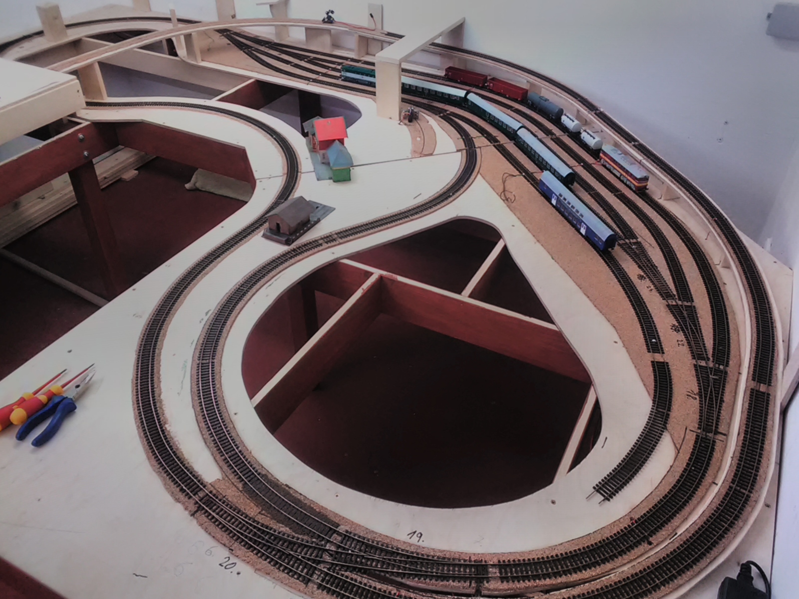 trochu jsem zase pokročil. Celé skryté nádraží je sjízdné a funkční. Spirálou jsem se vyškrábal v pohodě do prostoru hlavního nádraží kde teď začnu rozmerovat umístění kolejí a výhybek které ale donese až Ježíšek.