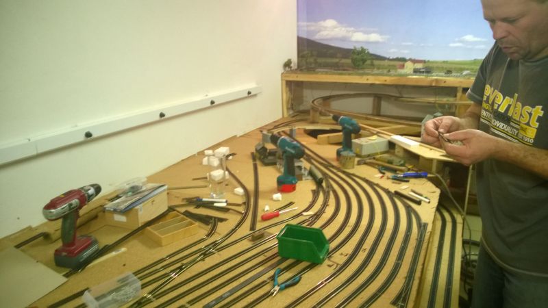 Tak na domácím kolejišti již začne pokládka kolejí v součastné době navlečeno 28 m prutů a ještě je to málo...