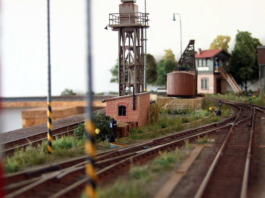 Vodní jeřáby bývaly rozstrkány v obvodu stanice tak aby zbrojení bylo co nejrychlejší, včetně dopravních kolejí.