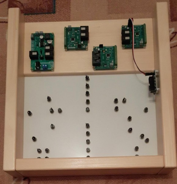 Možná to tak vůbec nevypadá, ale pořád stavím dál. Tedy spíš než stavím, tak drátuju. Nemám moc času a upřímně řečeno, není to ani žádná velká zábava ;). Mám už osazena všechna serva pod výhybkami a jsou připojena k výhybkovým dekodérům. Také jsem osadil napájecí modul a z něj natáhl páteřní rozvod 5V stejnosměrných a dál větve k jednotlivým dekodérům. Teď mne čeká osazení serv trnem k výhybkám a nastavení jejich chodu. Netuším, jak se to dělá jinde, ale u MGP je to banální záležitost: v programovací aplikaci na tabletu vyberu příslušný dekodér, na něm servo, pak ho na grafickém rozhraní nastavím do střední polohy, nasadím trn a potom jen nastavuji pohyb jedním a druhým směrem. To se dělá po jednotlivých krocích +- 1° nebo 10°. Takže zábava na příštích pár dnů je jasná. Tento týden by už konečně měl být hotový ovládací pult, tak se budu moct pohnout o kus dál.