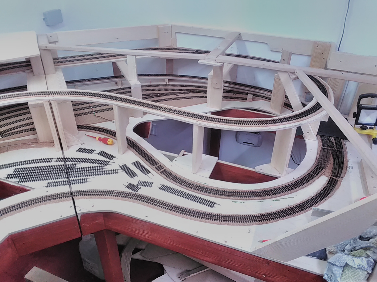 trochu jsem zase pokročil. Celé skryté nádraží je sjízdné a funkční. Spirálou jsem se vyškrábal v pohodě do prostoru hlavního nádraží kde teď začnu rozmerovat umístění kolejí a výhybek které ale donese až Ježíšek.