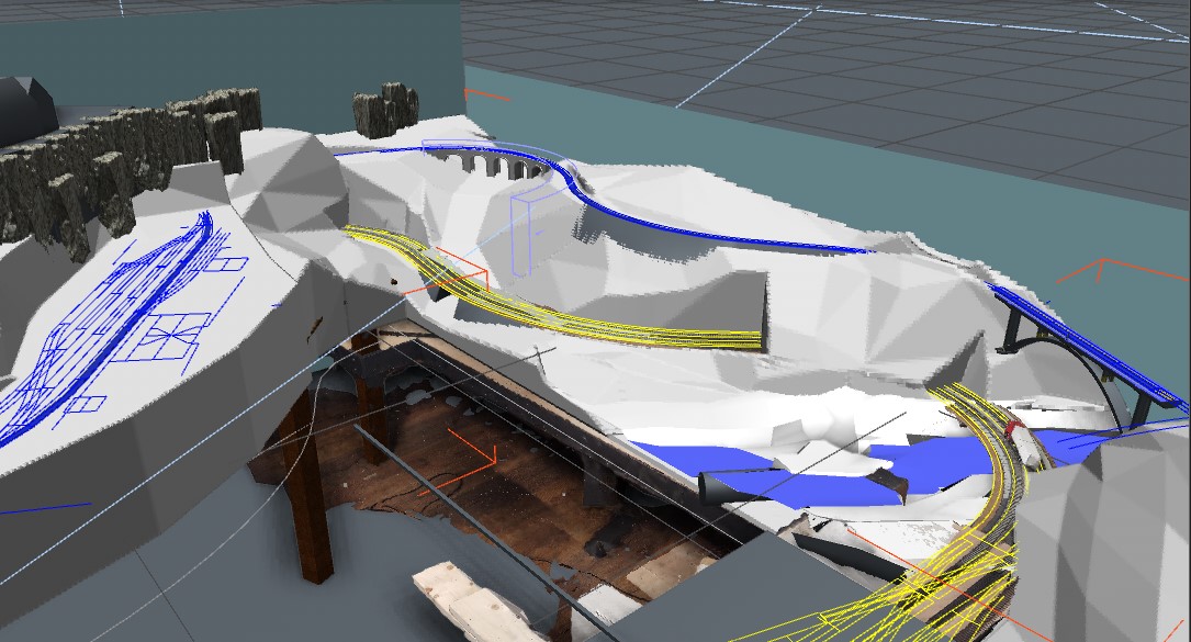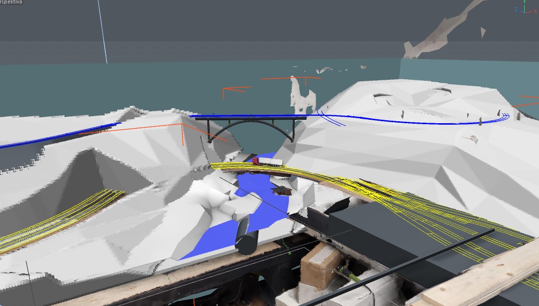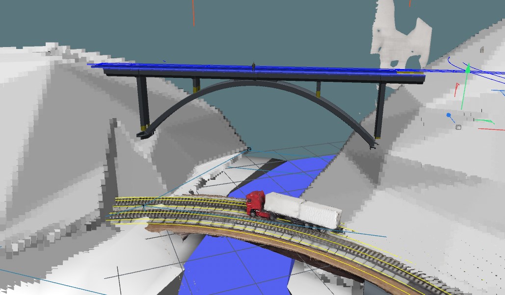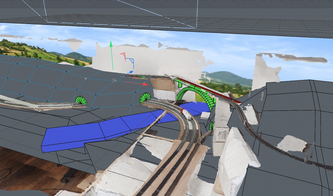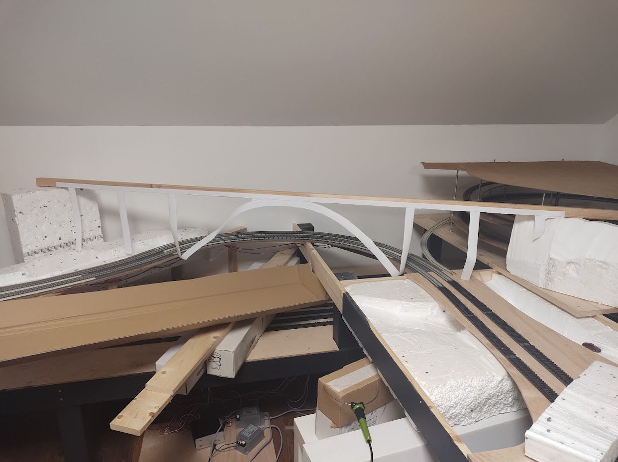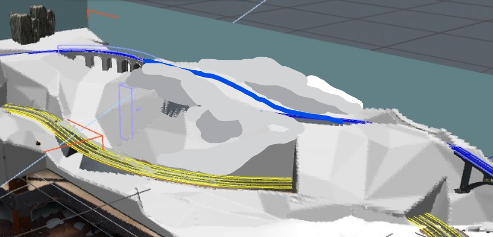 - Obloukový most tam krásně sedí, jsem rád, že jsem se trefil. Jen tu trať od něj k viaduktu netoč stejnými oblouky jako trať dole. Na straně viaduktu bych nechal oblouk volnější a esíčko jen okolo nějaké skály blíž k řece, lokálka se může víc klikatit (třeba viz obrázek níže). Platí, že napřed byl kopec a pak do n ěj kutali trať.
