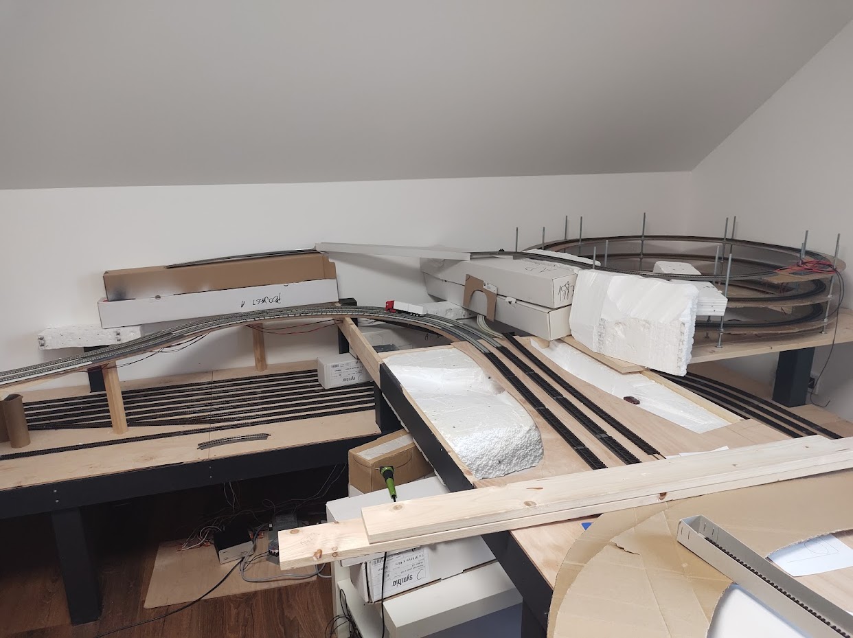 - Otočená menší stanice je asi lepší, ale oblouky nalevo podél hrany panelu bych nějak rozhodil na méně pravidelné - takhle má lokálka velkoryseji vedenou trať než "koridor".