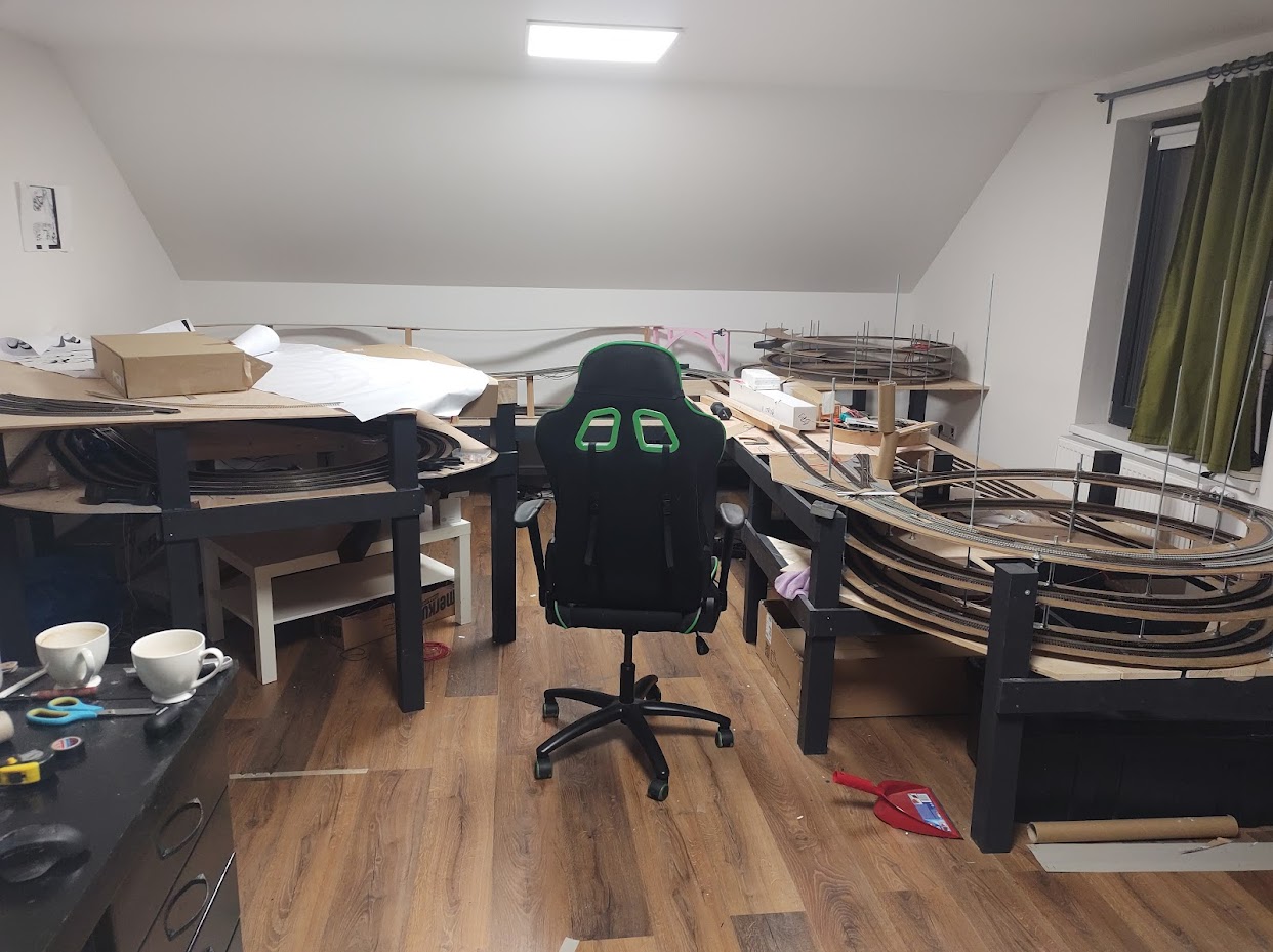 - Když jsi stanici teď přehodil (hurá, co taky se stanicí u zdi!?), nezkusil bys tu levou část celou připlácnout ke stěně? Prostě vyhodit ten cca 30°segment a ten velký stůl srovnat? Získáš místo, malá stanice nebude utopená v rohu a bude na ni vidět.