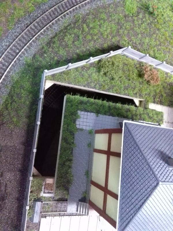 Takhle to mám udělané u oddělávací budovy ( U té viditelné roviny budou ještě natřeny boky na tmavě hnědou a už taky nebude vidět ) . Přechody mezi segmenty můžou být podobně...