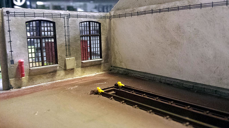 Pak různá dílenská zařízení, zvedáky, pajsry, palety s uloženými díly a součástmi mašin, rudly, čtyřkolové vozíky, kolejový panvágl (malý 2.nápr. vozík), přes koleje přechodové rošty a fošny. Vyvázané podvozky, nápravy, rozebrané lokomotivy a motory.