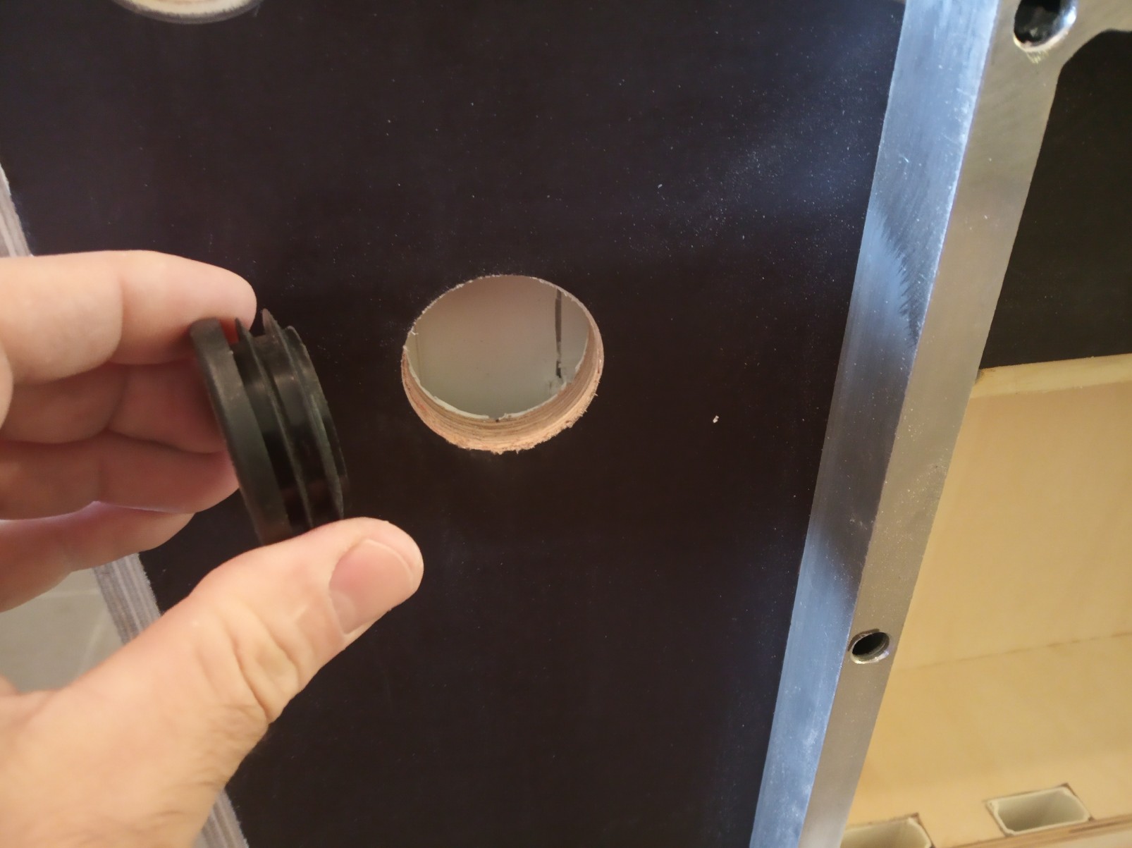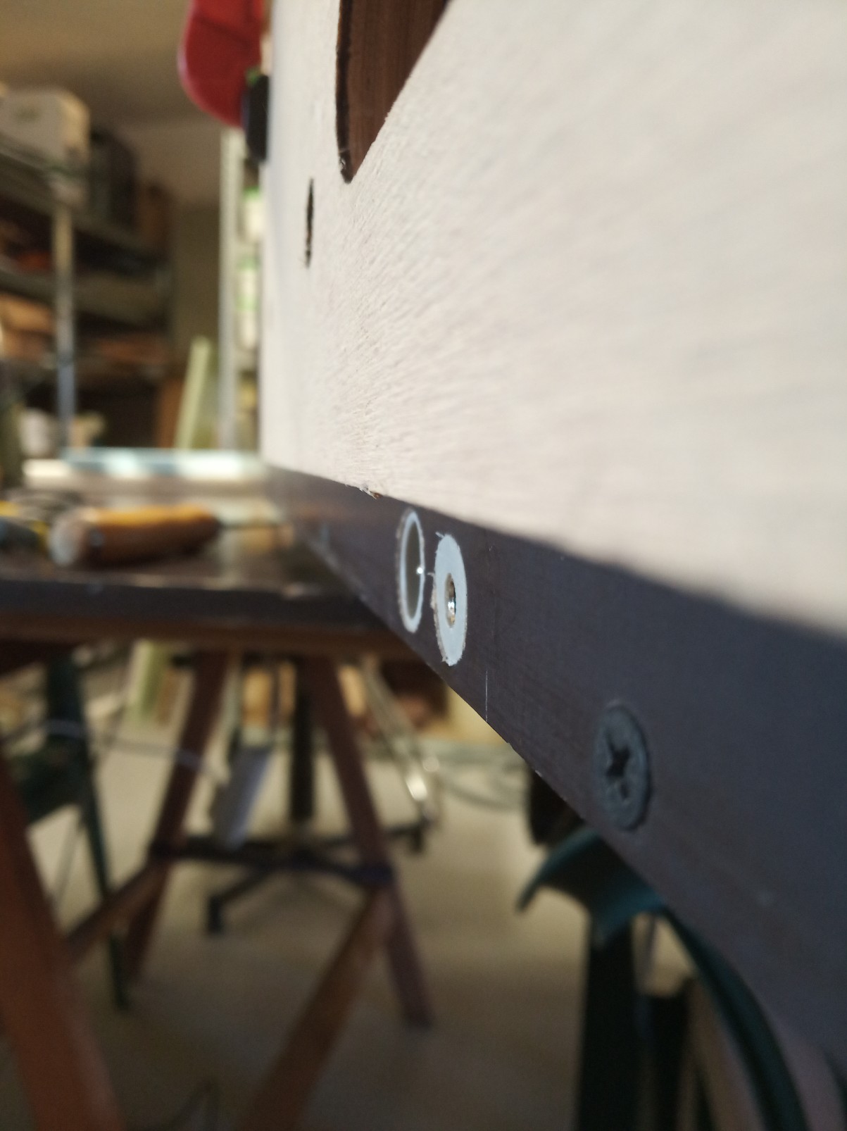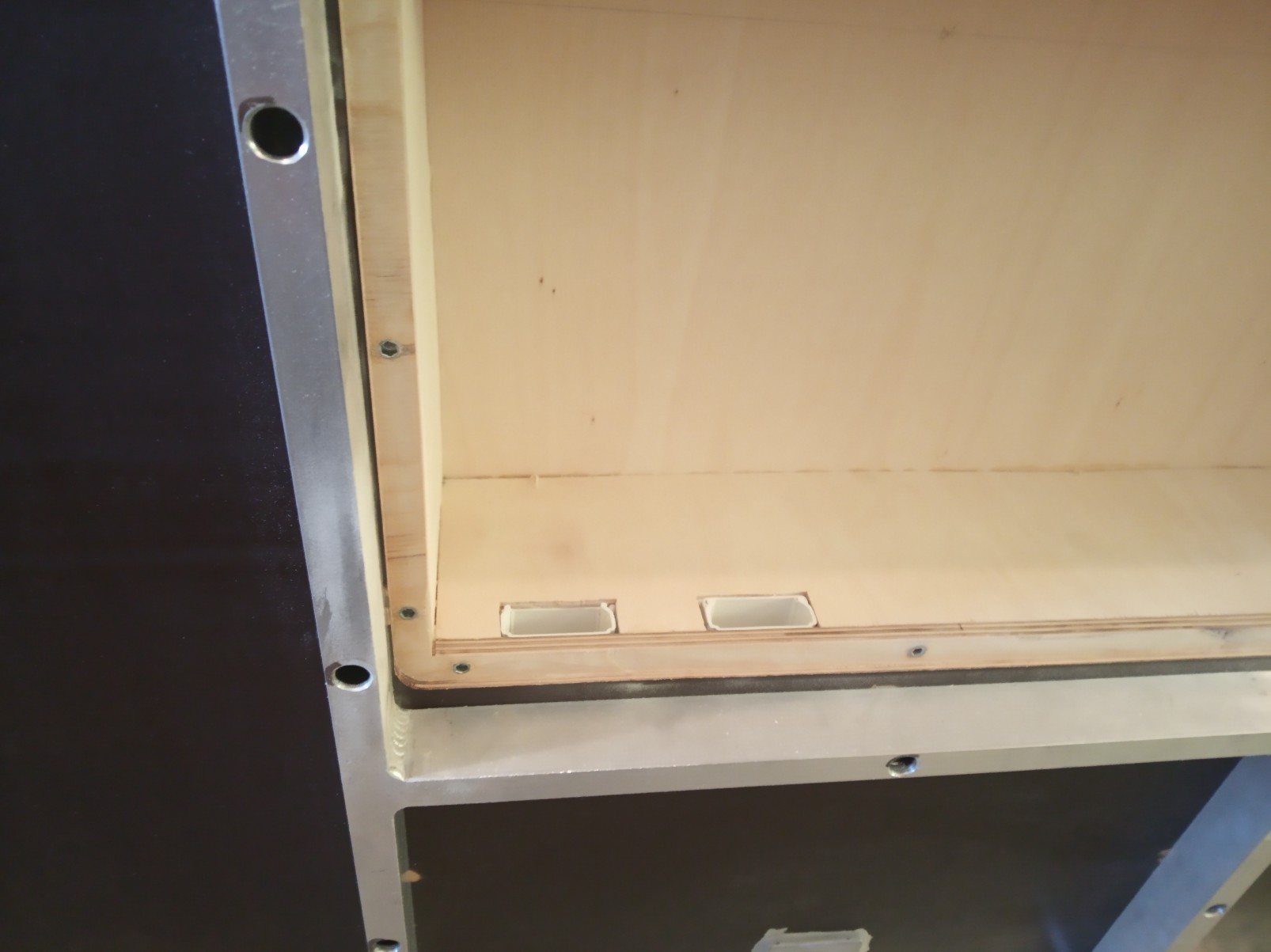 Bohužel se překližkové celoplato ukázalo jako ne moc vhodné, začlo se středem trochu prohýbat. Následně se investor přiznal k vlastnictví technologie a schopnostem svařovat hliník. Proto vznikl pomocný, kupodivu poměrně lehký rám, který eliminoval veškeré průhyby plotny.