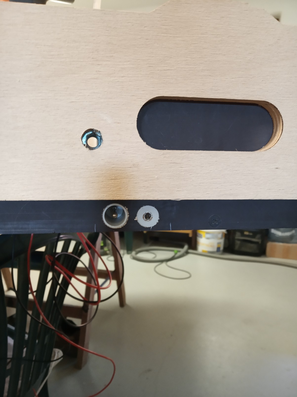 Na předchozí fotce jsou vidět po okrajích šachty pro nohy totožné s těmi modulovými. Na nich kolejiště celkem pajdá. V modulišti to nevadí, ale samostatně provozované to bude chtít ležet buď na stole, nebo nohy nějak zpevnit.