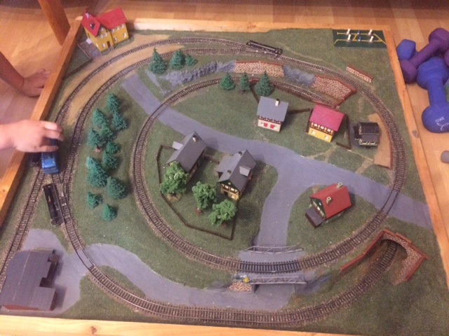 Když vidím, jak se zde řeší malé kolejiště - nazývaná minikolejiště. Přidám sem to, co jsem skoro před čtvrtstoletím za dvě odpoledne stvořil pro malé kluky. Má to i dekl proti prachu, takže to vypadá celkem čistě. Takže je třeba se na to dívat optikou doby a také, že to bylo za dvě odpoledne a pro děti.