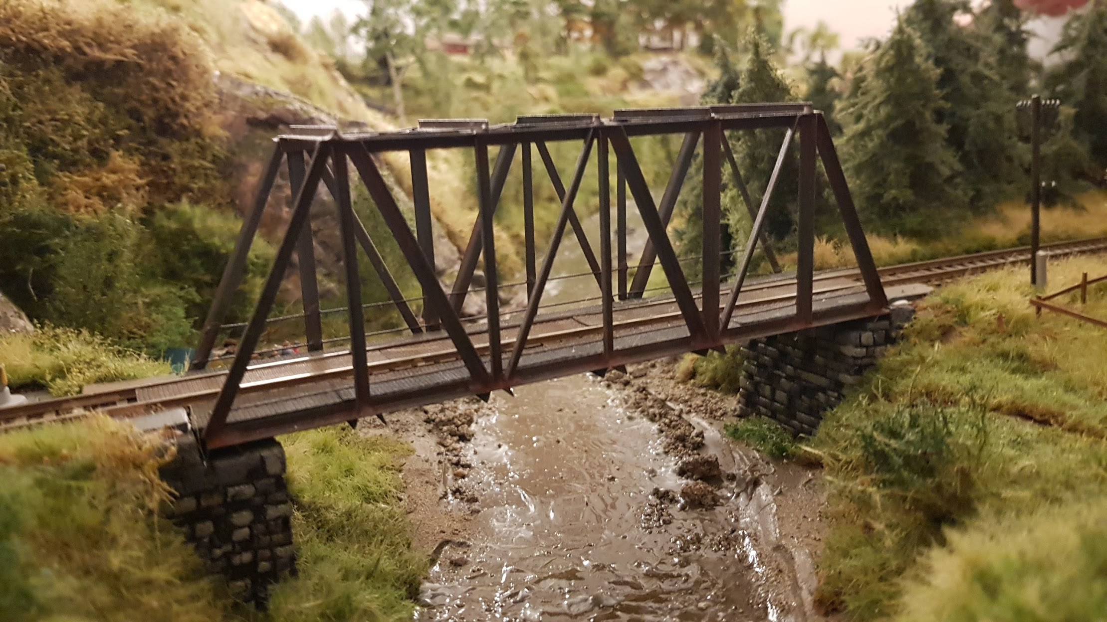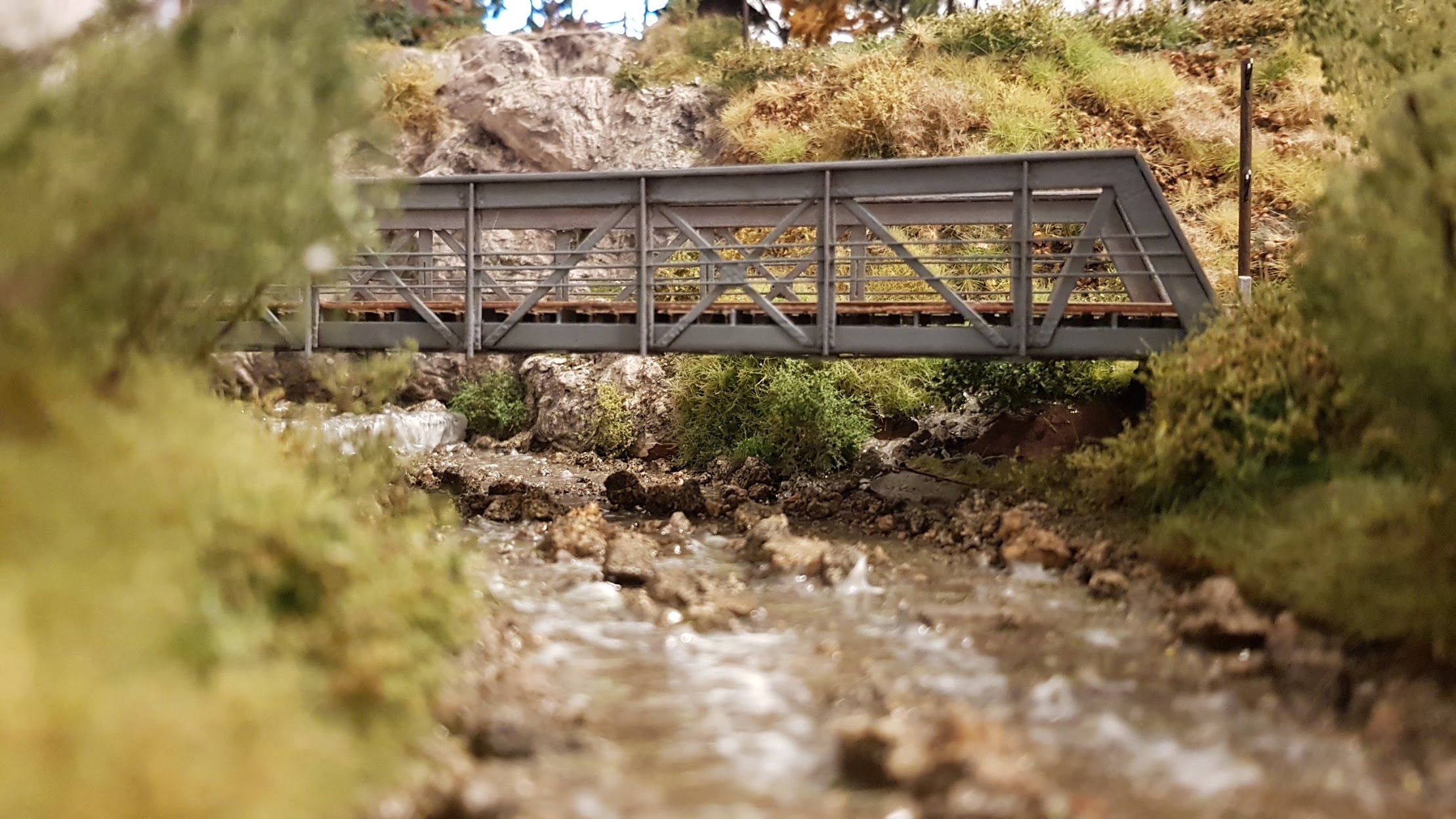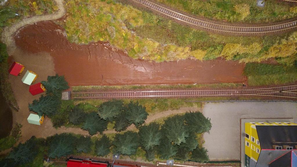 K předchozímu příspěvku: tekoucí voda na mém kolejišti: Realizováno pomocí WS Realistic Water C1211, vlnění pak akrylovým gelem Pébeo, dobarveno lokálně (pěnění za kameny) kapkou špinavě bílé
