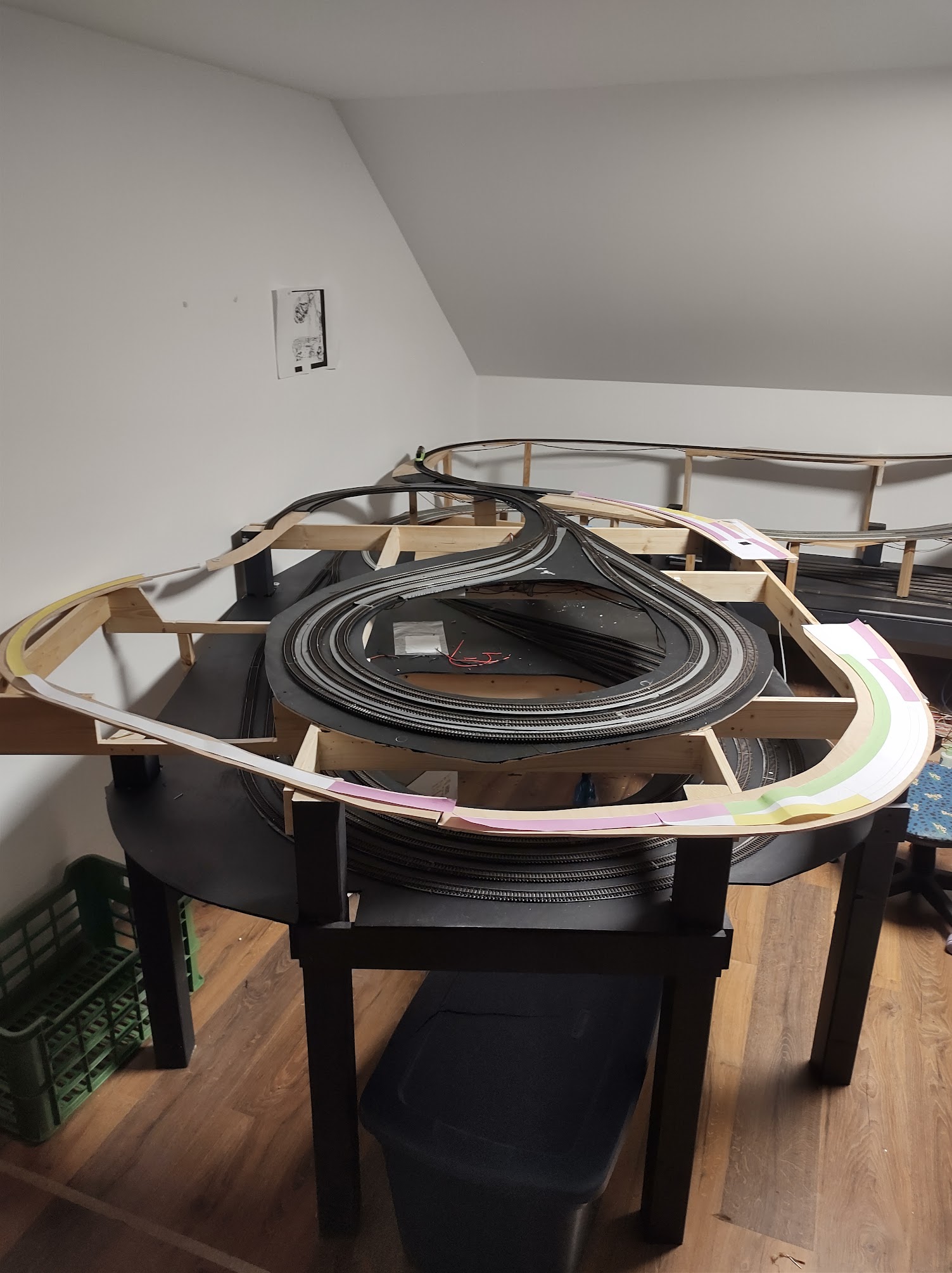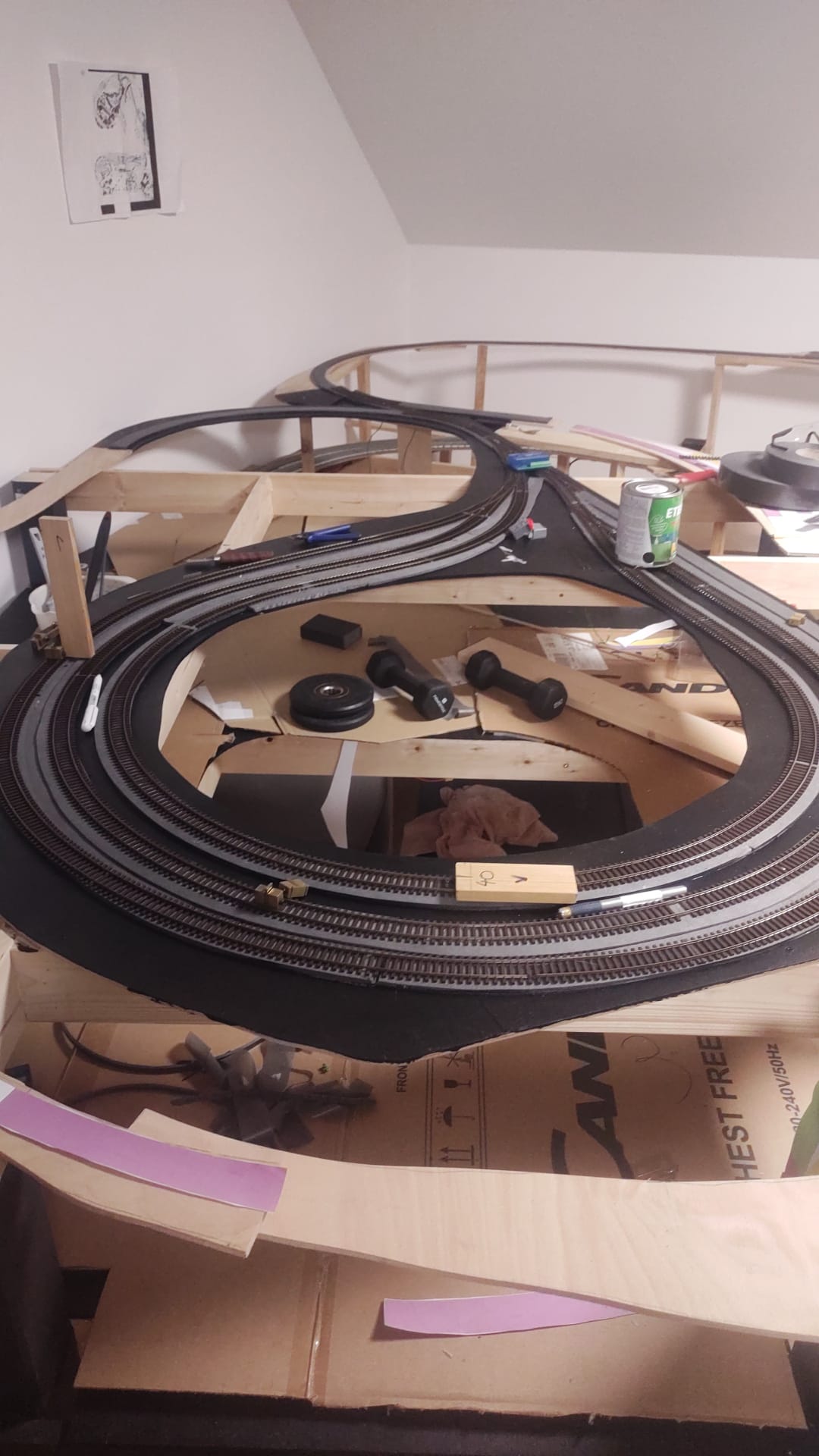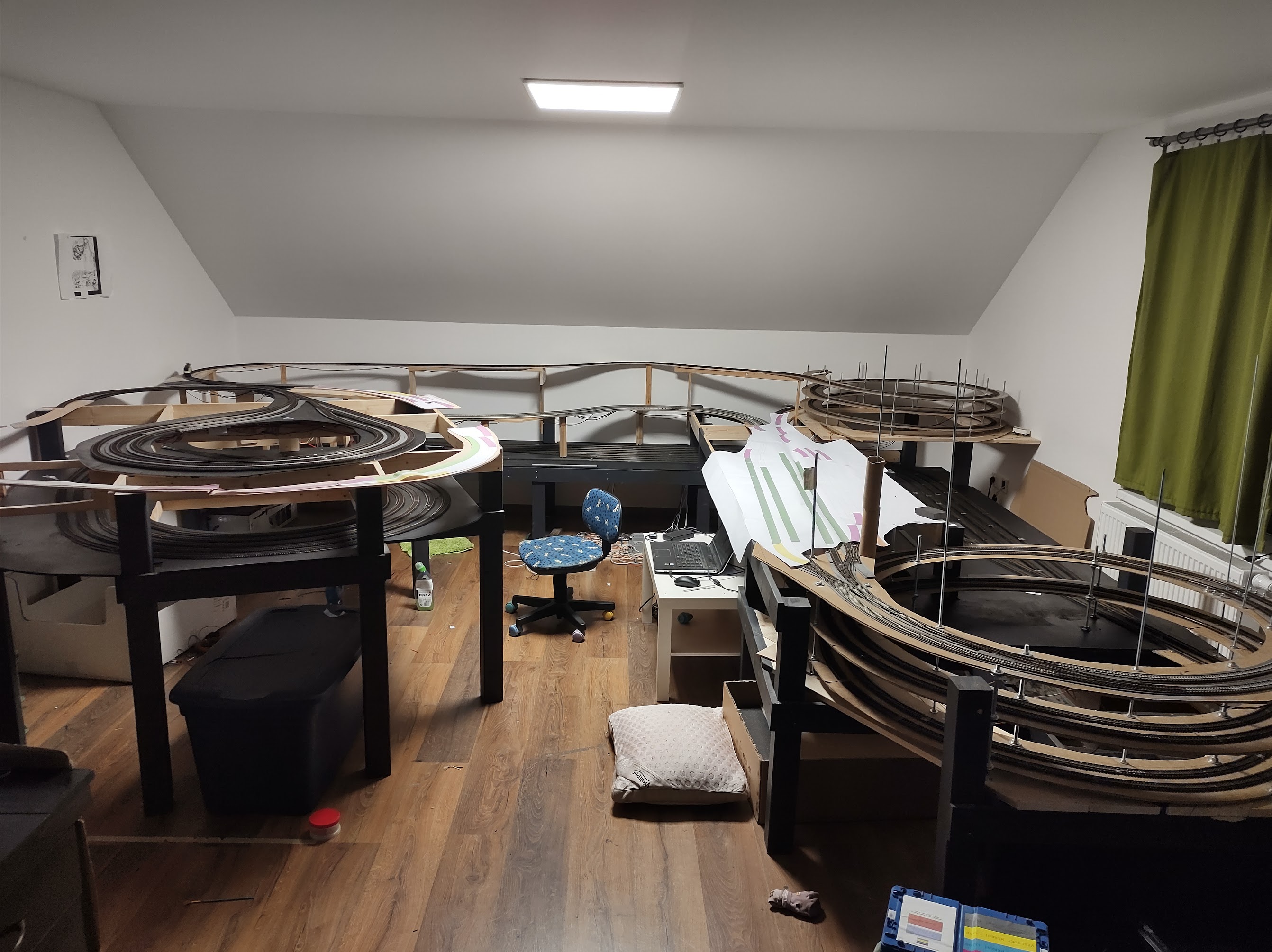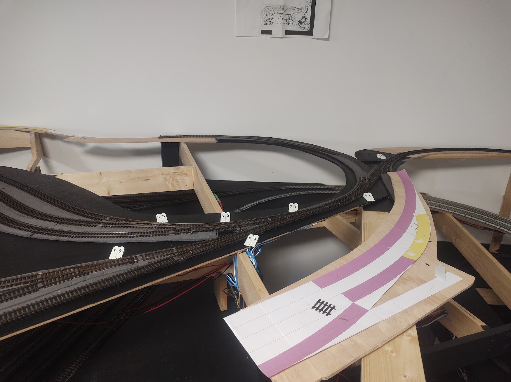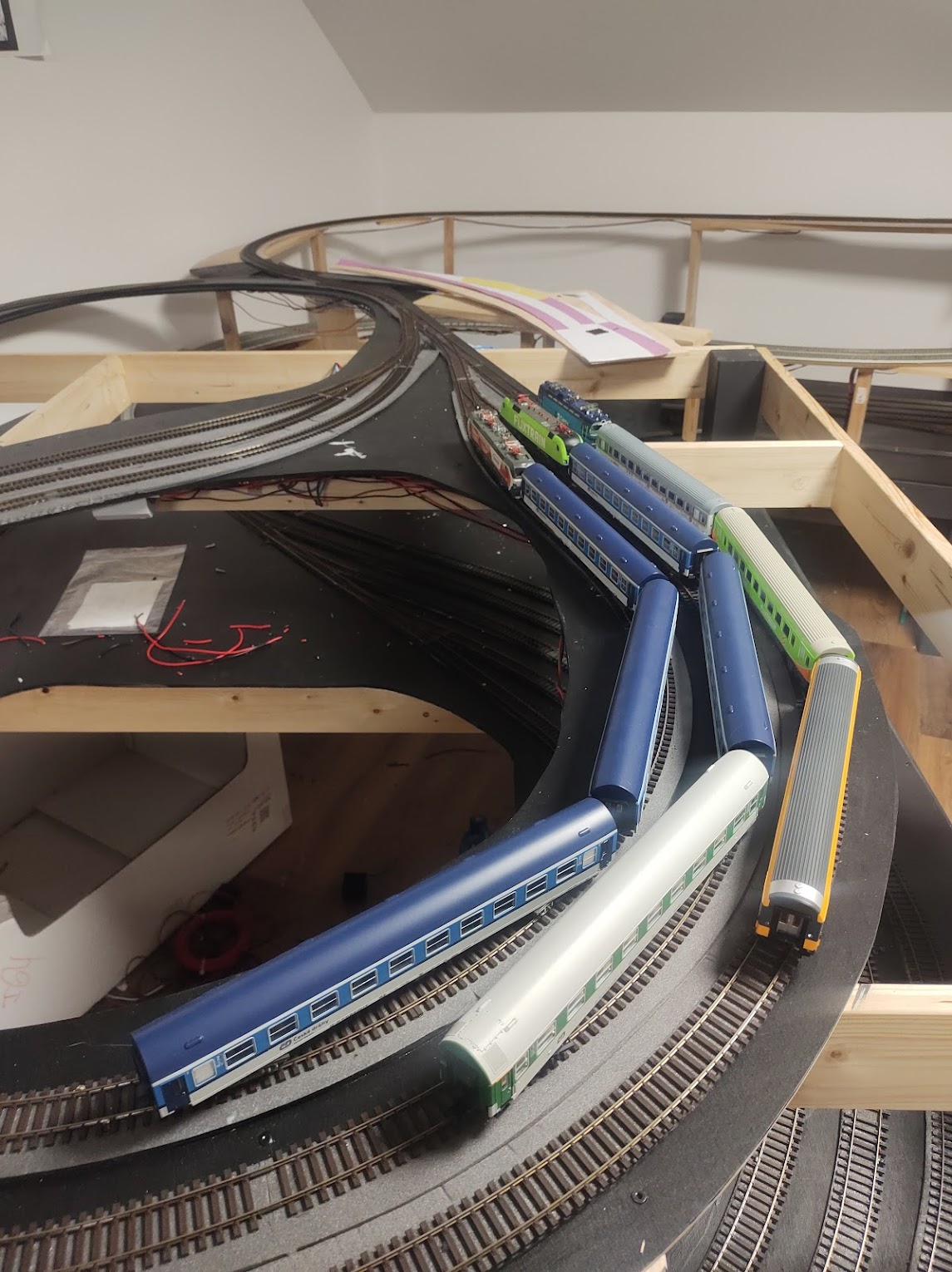 Momentálně je plán v několik fázích vytvořit "průjezdné smyčky" a ty zátěžově prohánět sem-tam testovacíma soupravama. Primárně chci otestovat a vyladit sjízdnost celého kolejiště a aby to nebylo chaotický připravil jsem si lepíky a když budu pozorovat problémy nalepím na daný místo patřičný lepík a posbírám tak data.