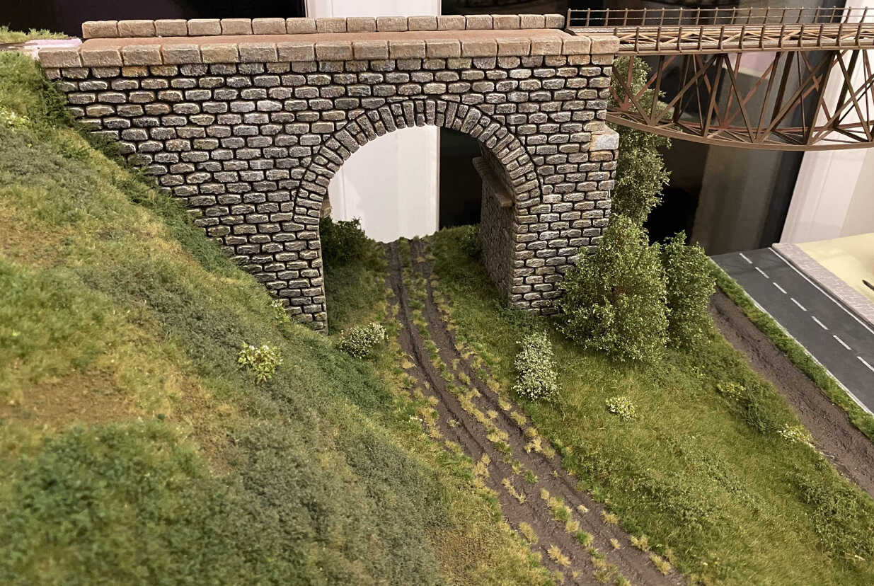 Těžko radit mistrovi. Spíš než radu přidám můj osobní postřeh, i když už teď to vypadá velmi dobře. Hlína na té cestě vypadá přesně jak po letní přeháňce, tedy mokrá. Holá místa mimo vyjeté Koleje bych nechal zarůst, kolem cesty bych trávu udělal trochu vyšší a proschlou. A spáry mezi kamením mostu jsou podle mne O.K. jihlavský most vypadal přesně takhle, než ho začali čistit. :D