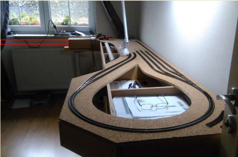 Jedná se o úsek vyznačený červeně , celé kolejiště (SN) půjde o 20 cmm dolů ( horní hrana zároveň stopením ) a viditelná část přijde na současnou výšku co je na fotce.