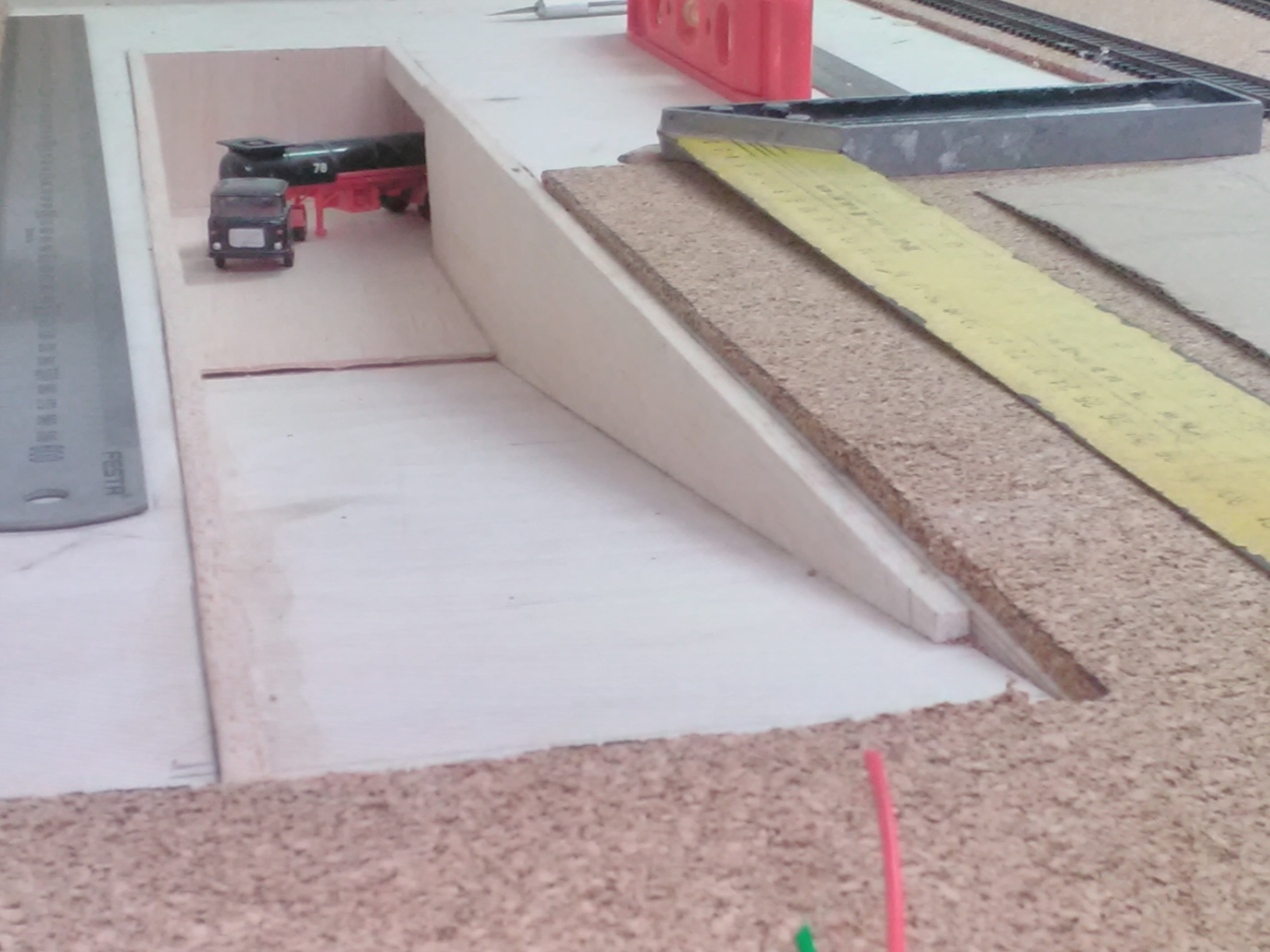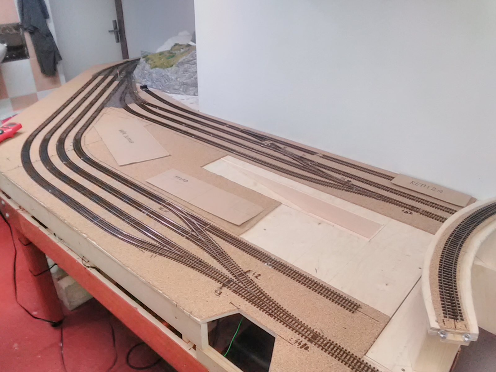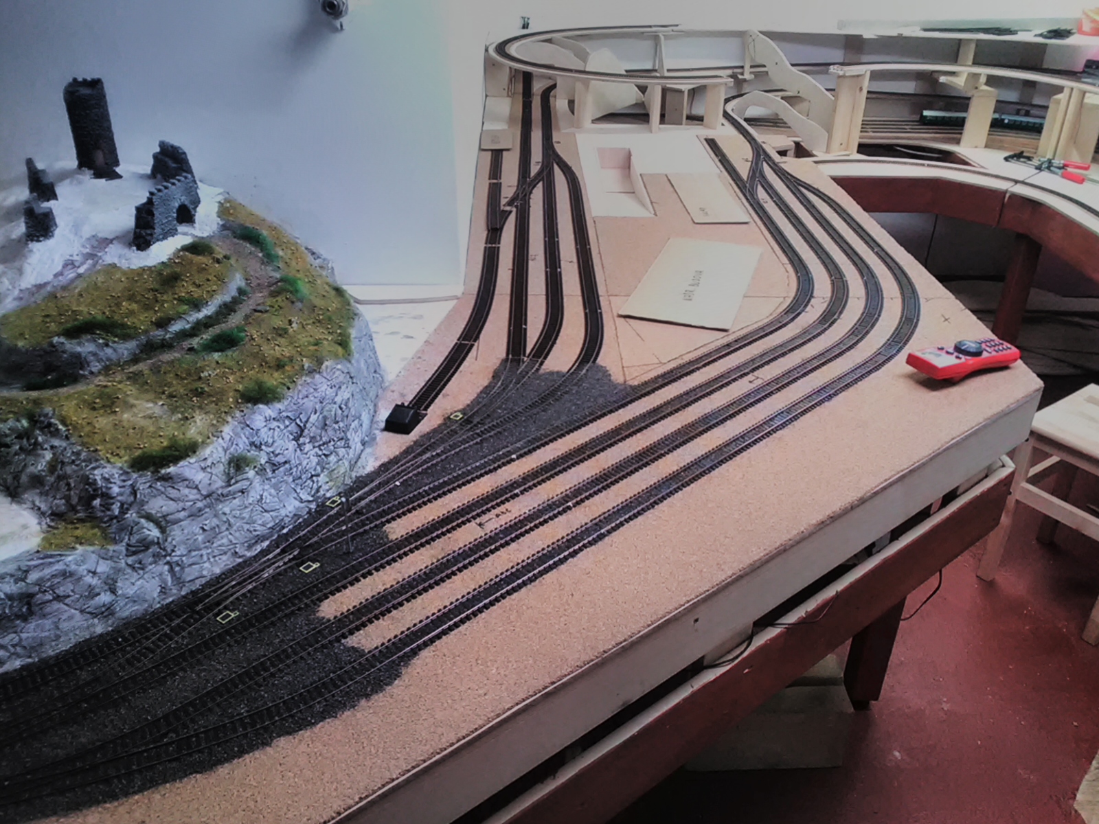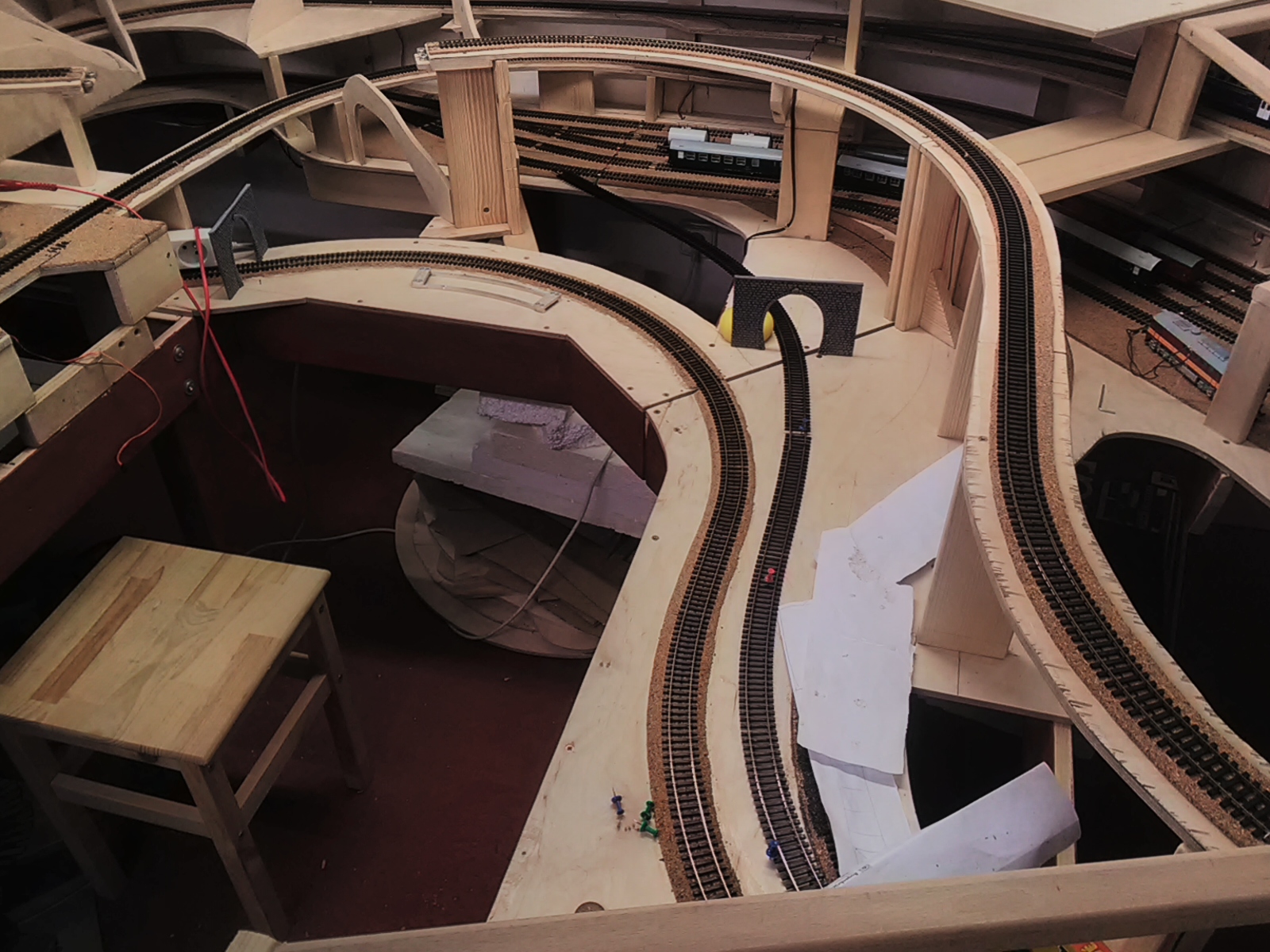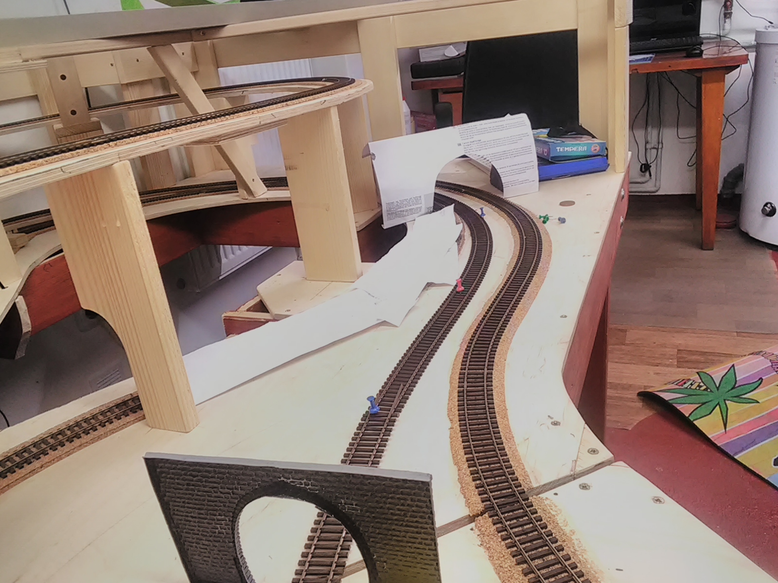 Tam ta vnitřní kolej je smyčka a podjíždí horní trať. Tak ja ji povedou před horní tratí. Tím mi přibyde cca 1m viditelné trati a z toho bude kus dvojkolejné.
