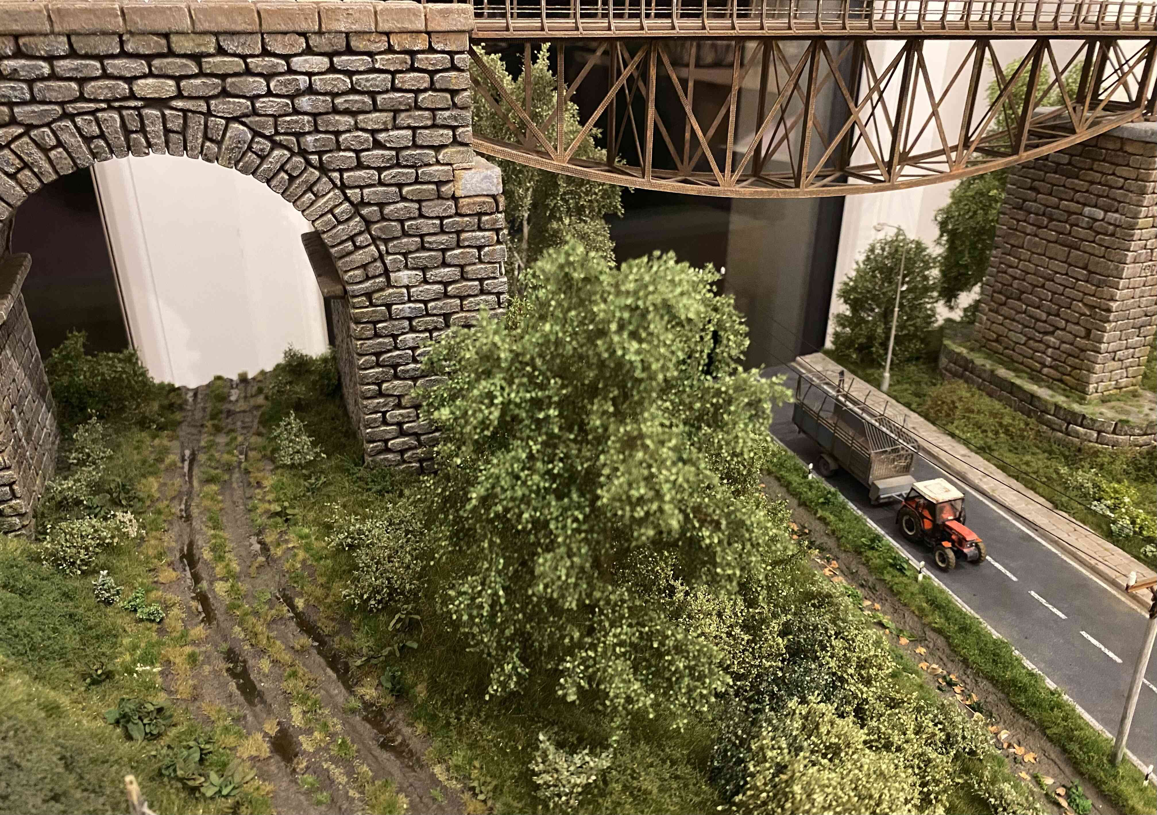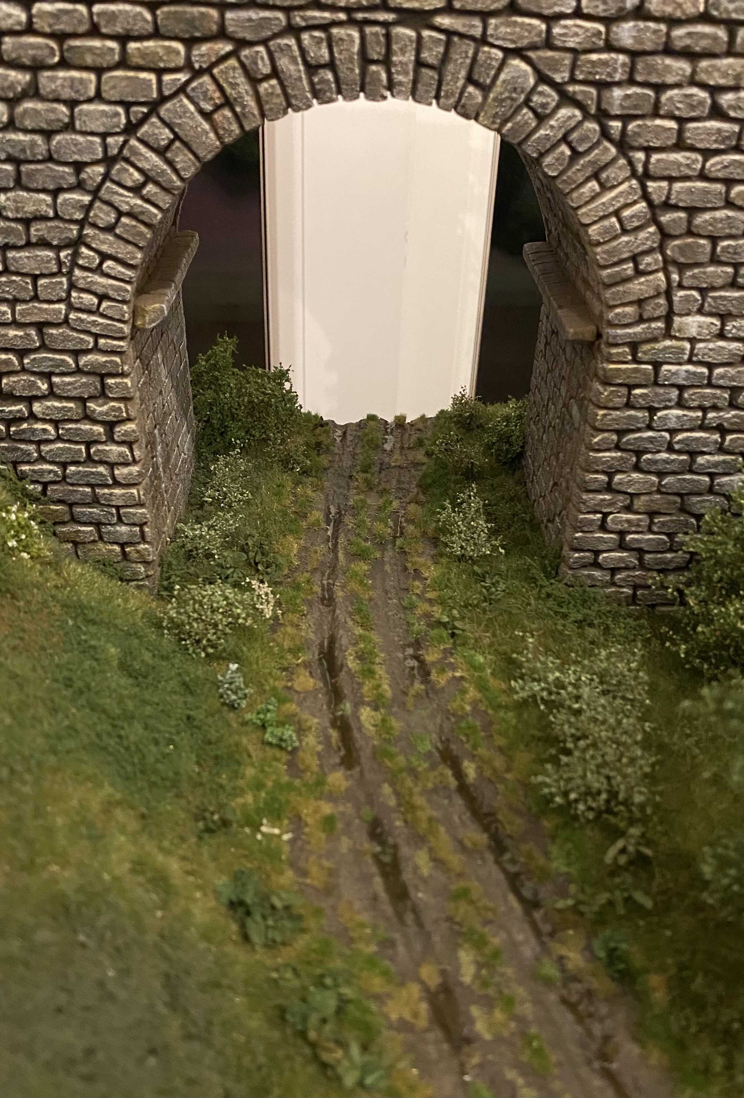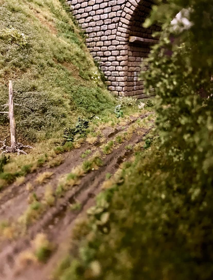 Jinak ani dnes jsem se neflakal. Doplnil jsem vsechny vysky krovin v casti pod pilirem. A zamaskoval kraje prechodu jak u strouhy tak cesty. Strouhu ted zanesu bordelem nalepim jeste ulomeny kmen a vrhnu se konecne na barevne doladeni cesty plus trochu te nejkratsi travy a vody.