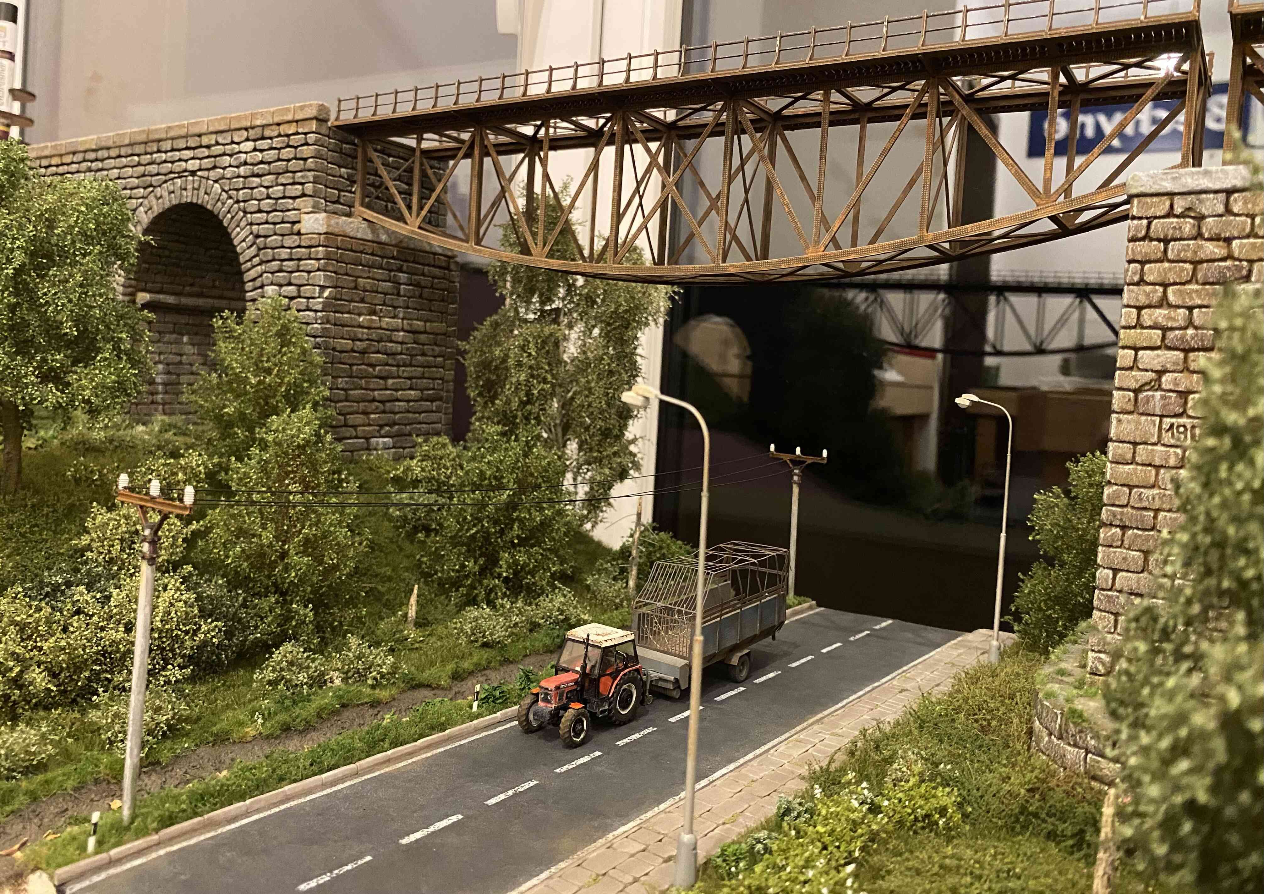 Sleduji. Hezký, moc, zvlášť ten Zetor 8) Stran barev, patiny to vypadá přirozeně. Co se mi nelíbí...Celkově je to takové moc přesně "uměle rovné" nebo jak to správně pojmenovat :D Vyjeté koleje, jak podle pravítka, zvlášt v takovém bahně jak je znázorněno nebudou rovné...., škarpa, po celé délce stejný bordel a stejně i tak rovnoměrně rozložený..., stačilo by ji nechat je zarůst tak různě vyšší trávou. A co se mi nelíbí vůbec, je ten chodník...., šutry rozměrově větší jak na mostě, to mi nesedí... Jestli to mají být nějaká 90-léta, soudě dle grafity na nějakém domě dříve, tak tam asi spolu s novým osvětlením udělali chodník z nějaké prafabrikované dlažby, klidně i asfaltový....