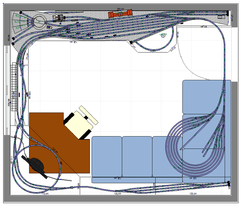 Ale vážně, Jirko co pro synka na kroužení místo celého skryťáku udělat jen jednu kolej po obvodu místnosti (za gaučem) a ve spirále ji napojit tak aby vedla do SN, případně trianglem do SN i zpět do stanice. Pod lokálkovou stanicí bude tunel, případně by tam mohla být i druhá průjezdná skrytá stanice, nebo výhybna.