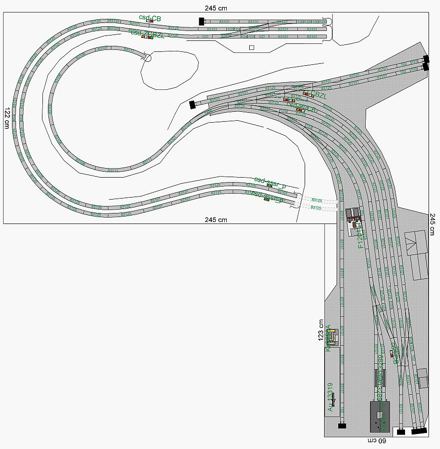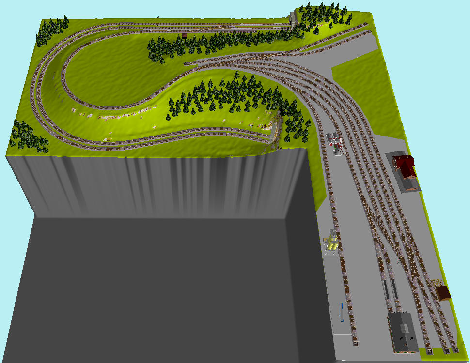 A co třeba takhle? V podzemí se mi vešla skrytá o 2x 5 kolejích (R353-396-...) ve 2 patrech (-120 a -240 mm), 2. suterén je přístupný dvoukolejným tobogánem o třech závitech.