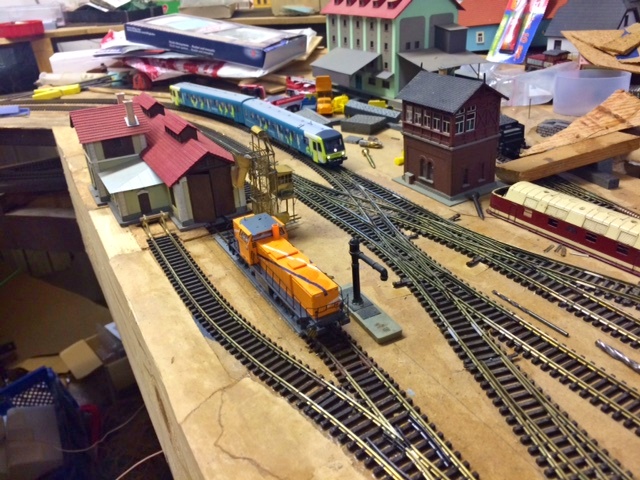 V tomto místě se svahem od výtopny jsem to nechával dlouhou dobu uležet, než jsem se dobral k tomu, kam a jak dojde konec vlečky, několikrát jsem jej různě posouval a rozhodl se pro zakončení jen jedním šturcem i z důvodu dvoukolejky, aby to nebylo moc blízko. Prostě kompromisy i na větší ploše.