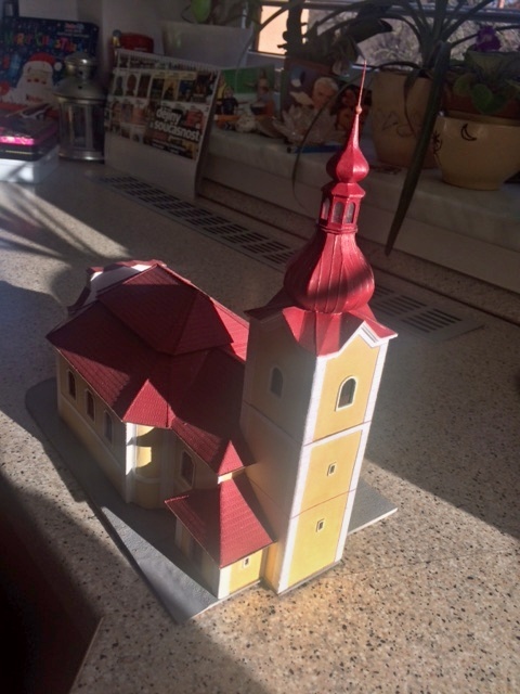 Podařilo se mi do konce roku dotvořit kostelu věž, jak jsem si vnitřně plánoval, byla to kombinace laseru a 3D tisku. Věž a střecha dělá kostel. :lol: Já ty nové technologie mám rád, je to s nimi rychlejší... U zasklení jsem se trošku trápil s přilepením fólii, je to již moc malé. Stavby jsou pro mne svým způsobem určitá relaxace, myšlenkama jsem stejně jinde a mozek stále pracuje v jiných sférách, ale zde vidím něco, co se pod rukama zhmotní...