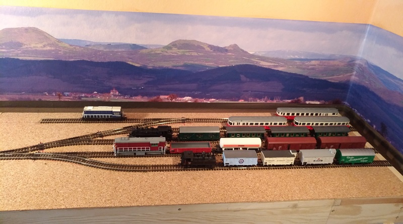 Po vyhodnocení všech pro a proti, jsem v SN "šuple"přehodnotil, dokoupil pár vekslí a skryté nádraží udělal v této fázi takto. Hold jedna lokomotiva soupravu přiveze, a jiná si pro ni z koncové stanice přijede :wink: