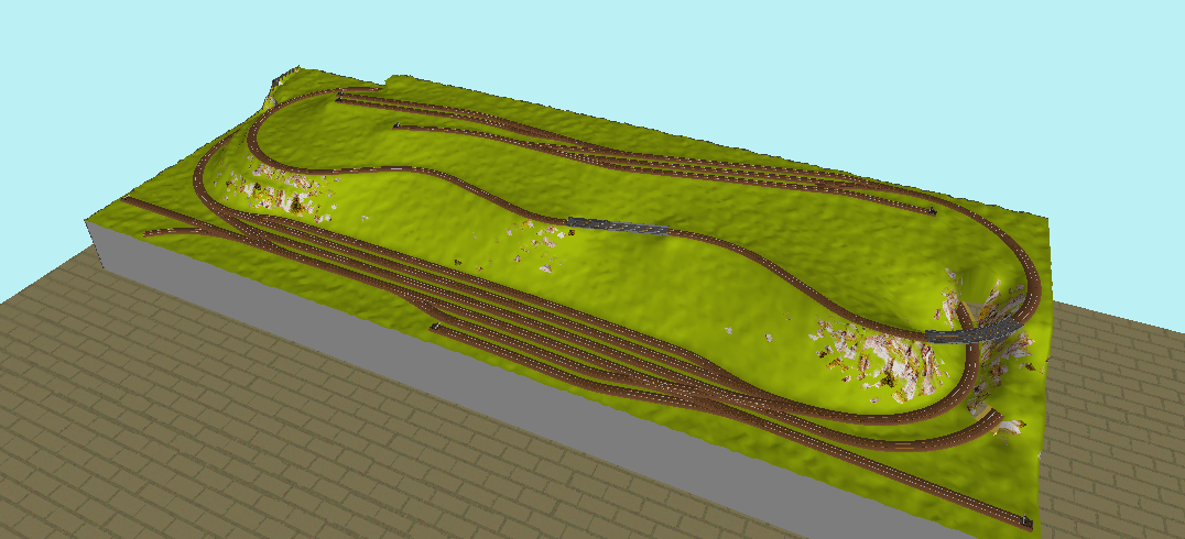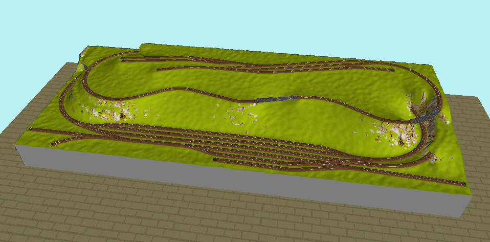 No, s tím prodloužením tratě na pravé straně je trochu problém. Pokud chceš nechat výhybnu na trati do koncové stanice skrytou, musel bys dostat koleje hlavní tratě a koleje výhybny více od sebe, aby to nevypadalo divně. Ale i tak buš mít vedle sebe zářez a tunel.