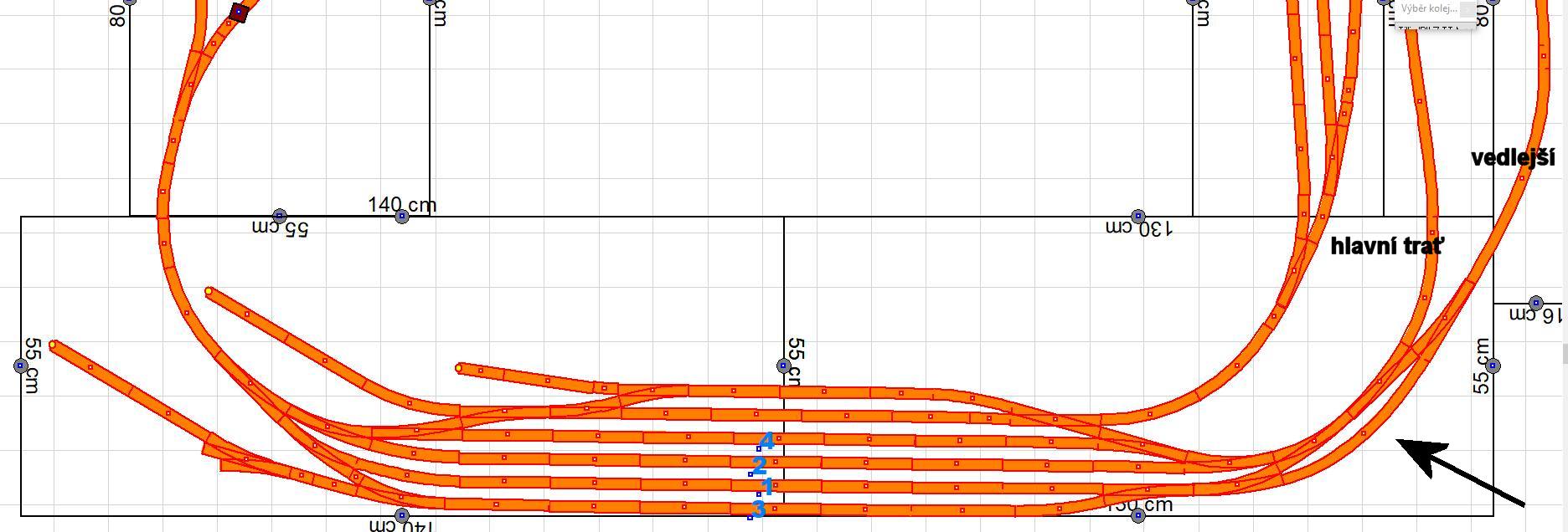 1. celé kolejiště (stanice Mankovičky vpředu, spojovací segmenty a SN + na něm stanice Ležky - tento segment teď řešíme)