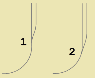 V původním řešení č. 1 při jízdě např. odspodu nahoru na vnější staniční kolej je nejprve levý oblouk širé tratě, za ním následuje pravý oblouk P výhybky (postavené do odbočky) a na něj navazuje levý vyrovnávací.