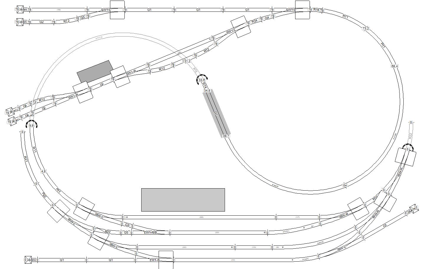 Dnes je ráno mlha, tak jsem nastřelil malou studii Tvého tématu do Wintracku. Snažil jsem se, aby to bylo realizovatelné co se týče rozestupů kolejí, kolizí s portály tunelů, rozumné vzdálenosti kolejí od hrany panelu, možné realizace terénu atp. V mém návrhu se mi nelíbí levé zhlaví, kde je odbočka možná pouze z jedné koleje, ještě popřemýšlím. Ve stoupáku ke koncové jsem se nevyhnul poloměru R267. Není dořešeno SN, je to jen studie, ale je vidět, že u koncové stanice jsem se trefil víceméně i do představ jiných diskutujících. Ber to jen jako případnou inspiraci jak to udělat / neudělat.