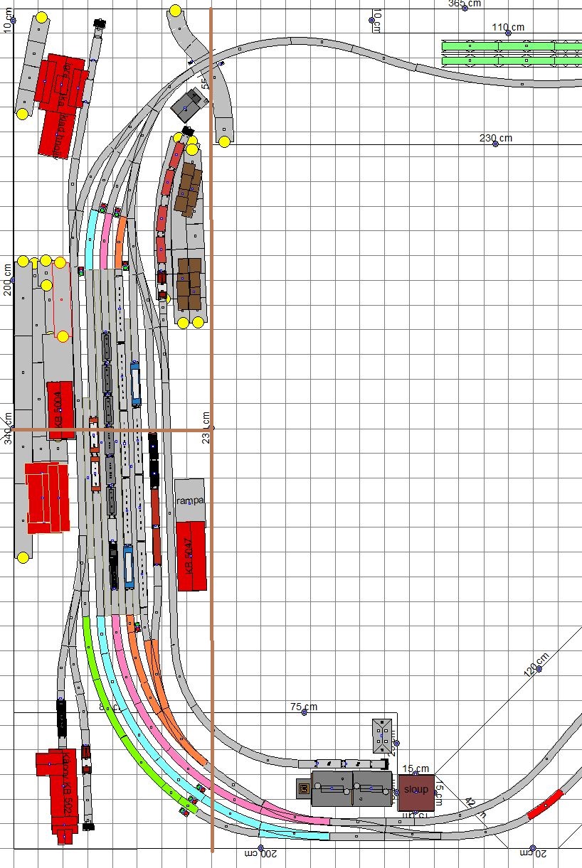 PS 2: už teď mě napadá zase mnoho dalších možností, jak plán poupravit, např. použít místo rovné výhybky k výtopně flexi obloukovou. Nechám to ale zatím tak, protože jinak bych to neustále předělával
