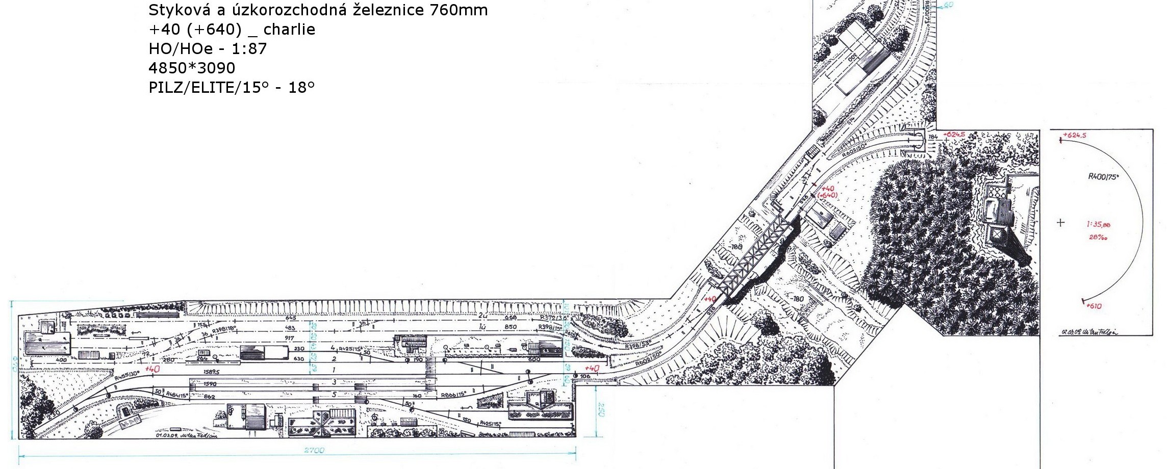 Ten projekt jsem navrhoval v počátcích své aktivity na DF.Datumování nese číslo 2.února 2009.Vím,že patřilo mezi mé prvními s kolejišti pro sco_27,Abe-Simpson.Na rozdíl od jmenovaných,vidím,že i přes moje začátečnícké chyby v projektování,stavba kolejiště u Charliho roste :wink:. Charlii vytrvej,protože zde se bude skutečně na co dívat.Dvoupatrové kolejiště se málokdy vidí v českých luzích a hájích.