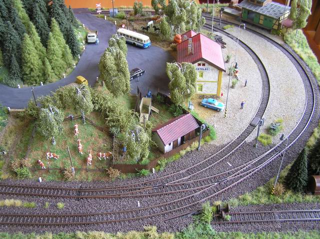 - hradlo vyjmuto nahrazeno kůlnou, doladění staniční budovy, kopec u přejezdu nahrazen skálou, lampy na nádraží, pár figurek atd.