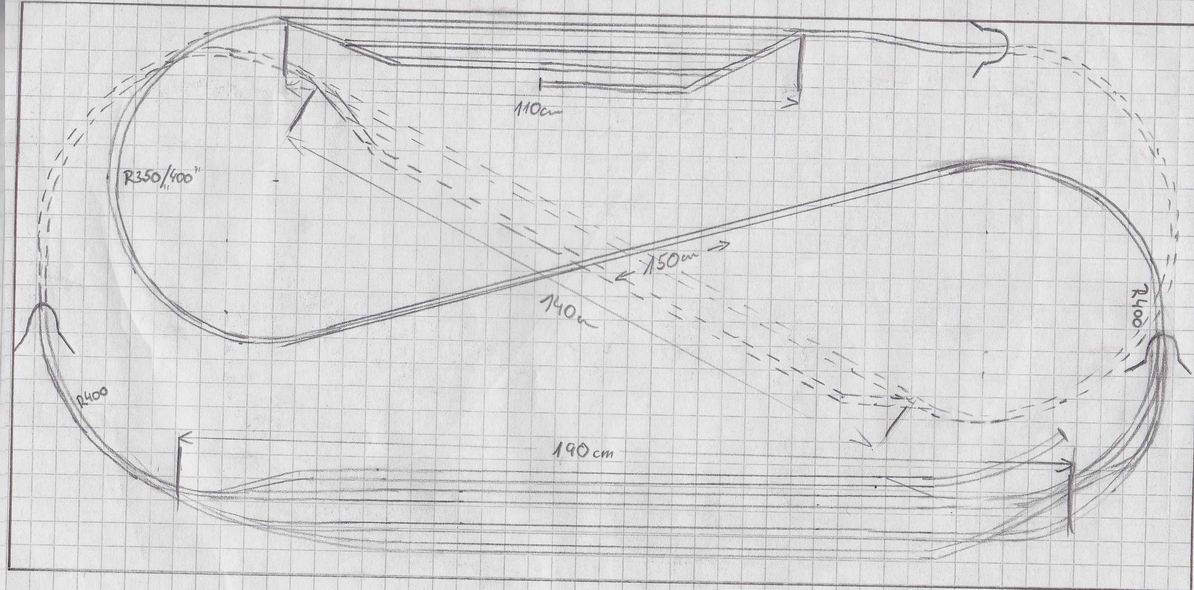 Michal Vaniš píše: .... nejsi schopen dosáhnout průjezdného profilu při křížení tratí! Respektive na jednom půlkruhu oblouku nejsi schopen zrealizovat potřebné stoupání ....