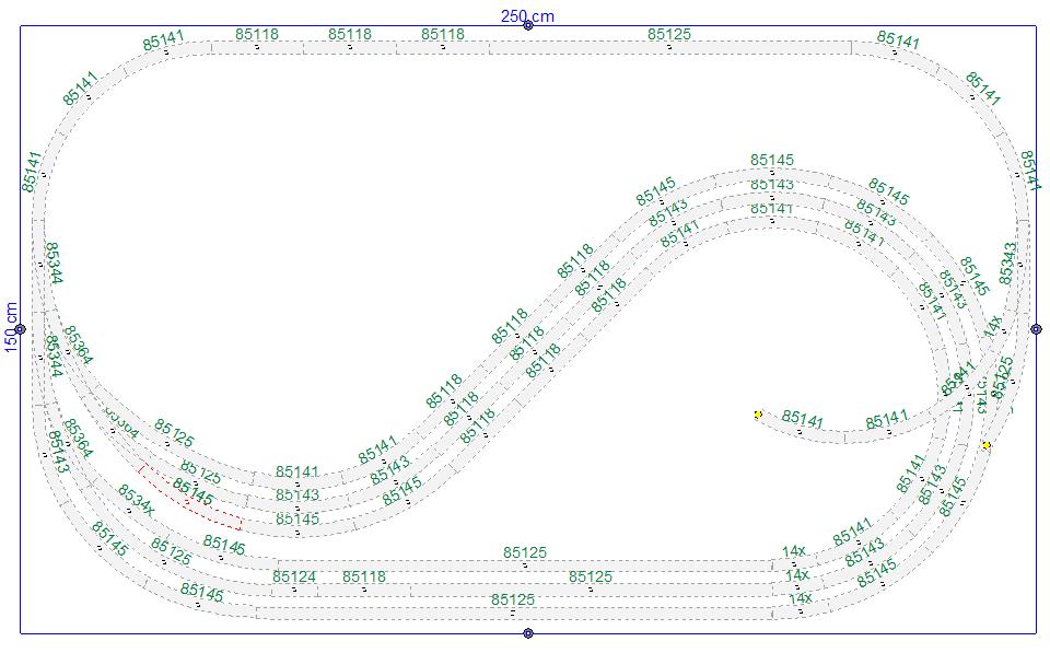 Netáhlo píše:Tak jak jsem ti navrhoval, vzal jsem "Menhartice" od MF a překreslil je do jednokolejné verze. Stoupání vychází všude 3cm/1m, oblouky na hlavní trati ve viditelné části jsou min. R800mm a všude dále je min. R2 (425mm). Použité výhybky jsou : rovné 15st. R866mm, angličan 15st. a obloukové 15st. R866mm/R425mm, vše Tillig Elite. Skryté nádraží se dá ještě dodělat přidáním kusých kolejí pro lokálku, na odstavení motoráku. Průjezdy jsou všude ok a minimálně je v každém místě 100mm. Ty koleje jsou od kraje dost na knap!, ale to se ještě všechno dá poupravit, tak aby ti pražce nečouhaly z kolejiště ven, popř. nepatrně zvětšit rozměr kolejiště