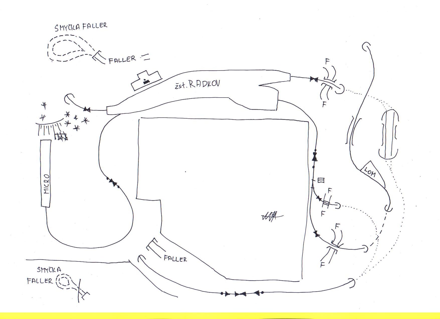 Ano lépe nechat tu stranu tak mohu li poprosit , za Radkovem je jěště radiátor takže tam je panel užší a ty koleje tam jentak nevlezou dle Tomova návrhu, ony jsou sice ty kopce většinou zespodu docela přístupné v podstatě co nejvíc duté a třeba celý vrchol kopce s rozhlednou lze oddělat ale ty stísněné prostory :D ,ta propojka kterou Tom odstranil tam vlastně vznikla proto že vlak by nevjel do Radkova ten by jako minul (sice blbě ,ale přece :? ) a objel ještě jednou celý okruh a teprve potom by vjel do stanice. Milane jestli mohu jaká by byla představa provozu u tvého návrhu , třeba lokálka vyjede z Radkova a skončí ve své skryté st. nebo se vrátí zase do Radkova ? Ptám se proto že jsem se tam snažil narvat tu koncovou staničku proto aby lokálka měla jasný konec a odtud by se vracela.