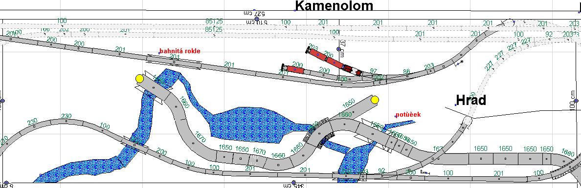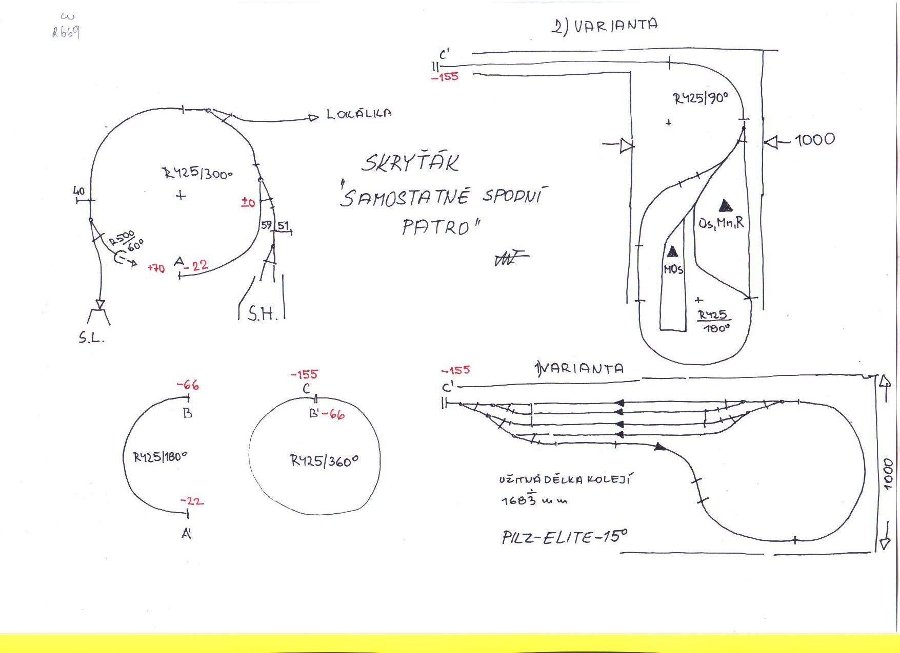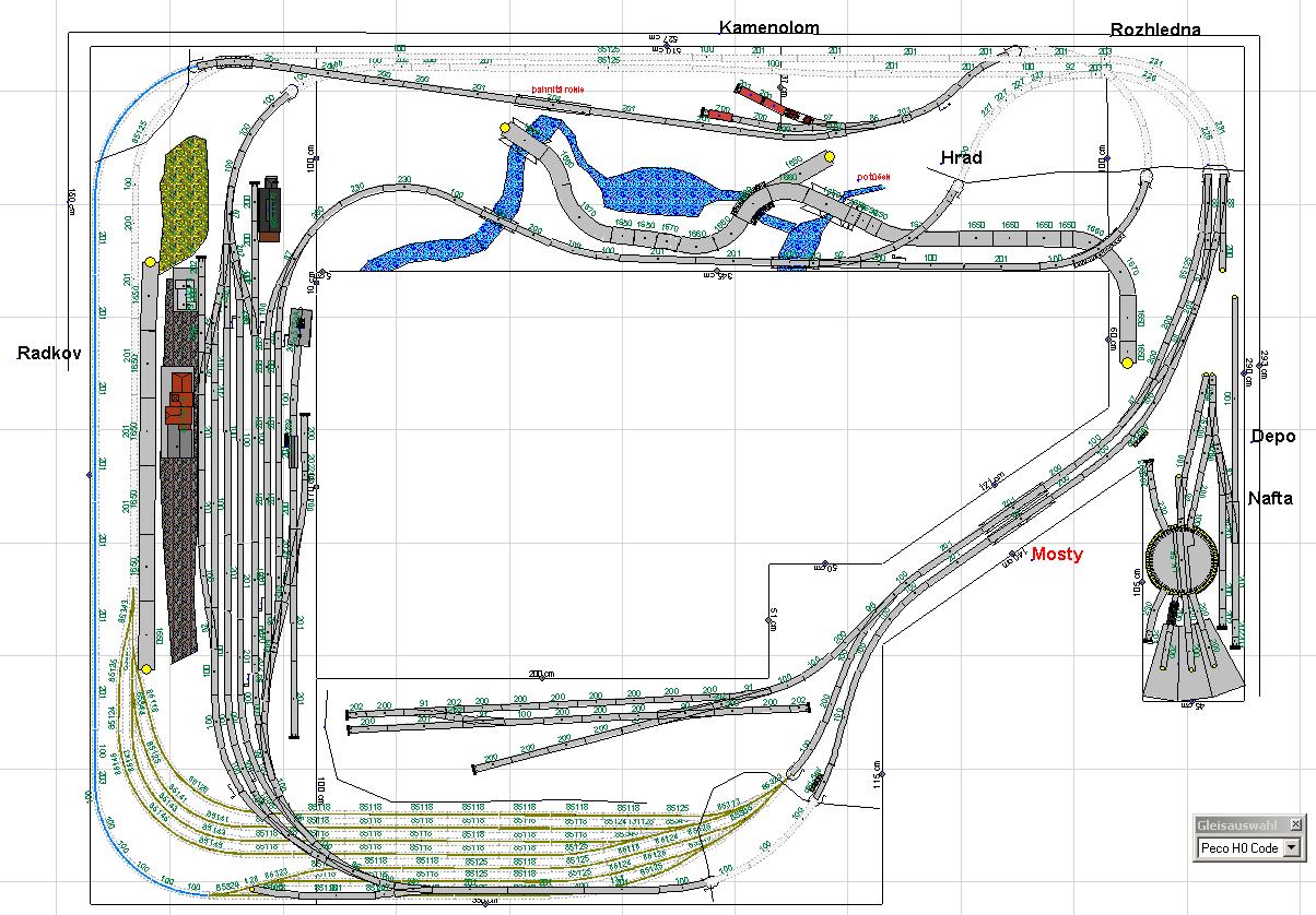 Milane a Tome vaše pracovní (plánovací) nasazení je úžasné , nápady super . Ještě mě napadlo co kdybych u návrhu Milanova skryťáku odkryl část koleje lokálky za Radkovem , zvedl ji a tato končila nad zmíněným srytým nádraží v nějaké koncové stanici ,bez napojení do skryté části , jesli to teda lze výškově by neměl být problém .Jinak vzadu most je dvoukolejný a i ten vysoký jsou domácí výroba a už se jednou stěhovali z mého starého a menšího kolejiště .Toto nebylo dostavěno neb se našla větší prostora.
