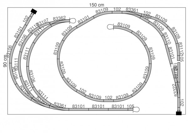 Pokusil jsem se do svého návrhu přidat jakési pseudo skryté nádraží, vlastně jen propojku, kde by rychlík čekal, až nadejde čas jeho příjezdu. Uznávám, že je to trochu násilné...