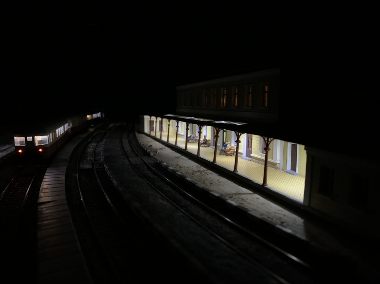 Prikladam jednu noční fotku. Nádražní budova je pouze položena, tak moc neprohlizejte peron.