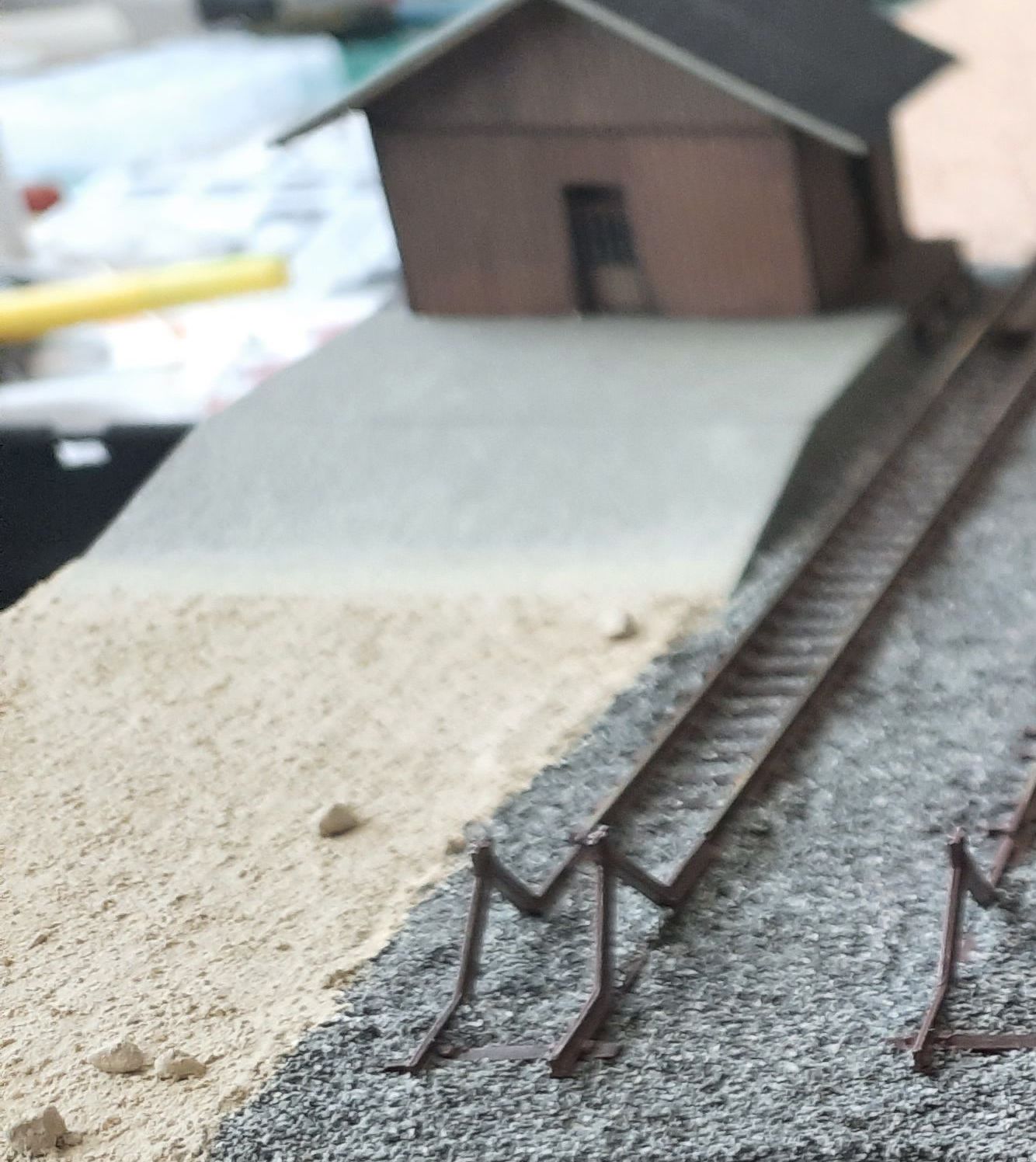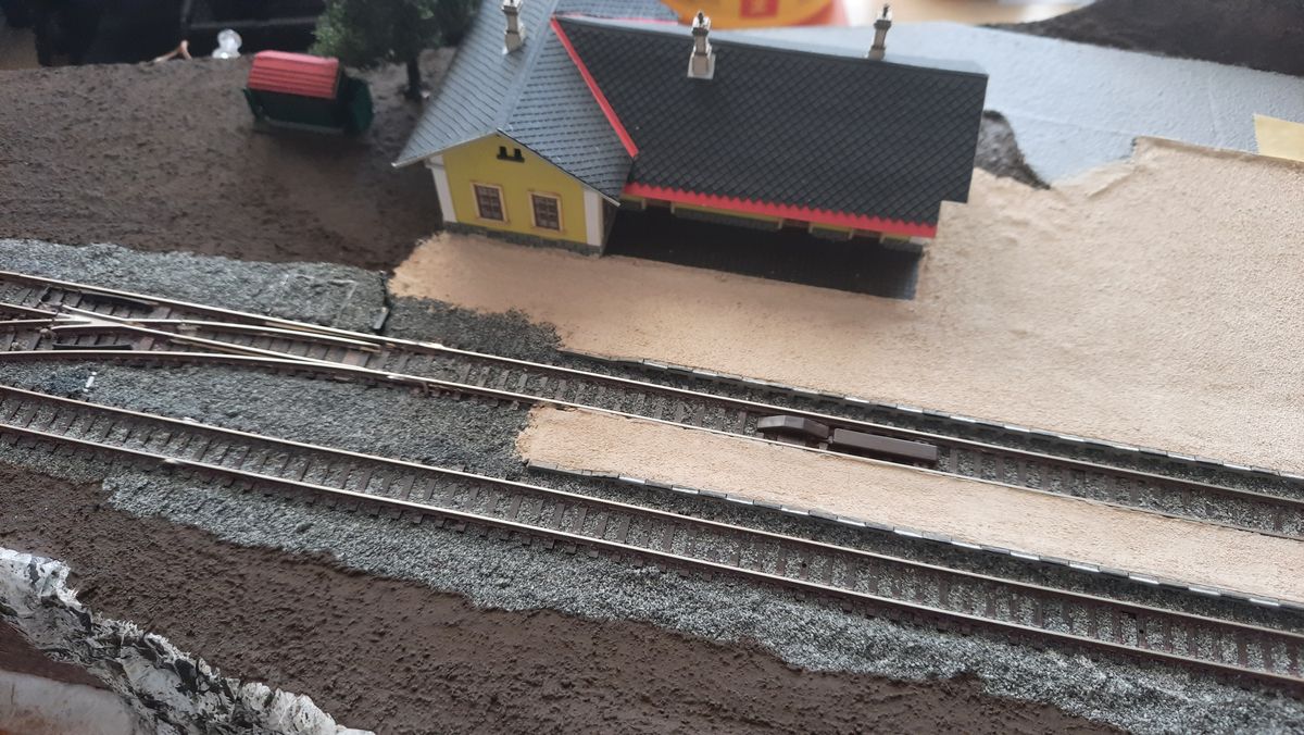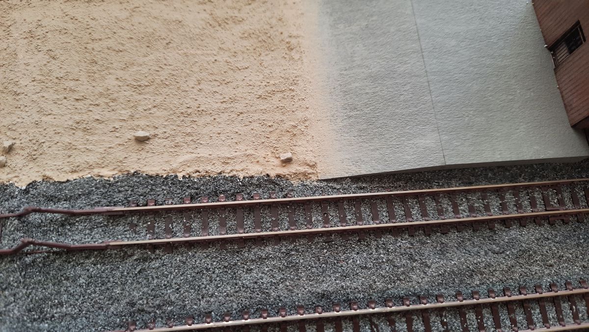 Je i vidět, jak dopadl pokus o rezavý štěrk. Dělal jsem to stříkací pistoli a Humbrolkou. Ve skutečnosti je to o něco světlejší, než na fotkách.