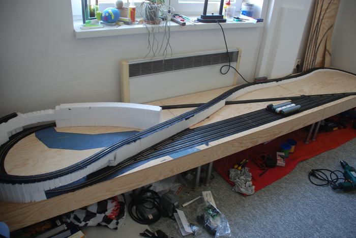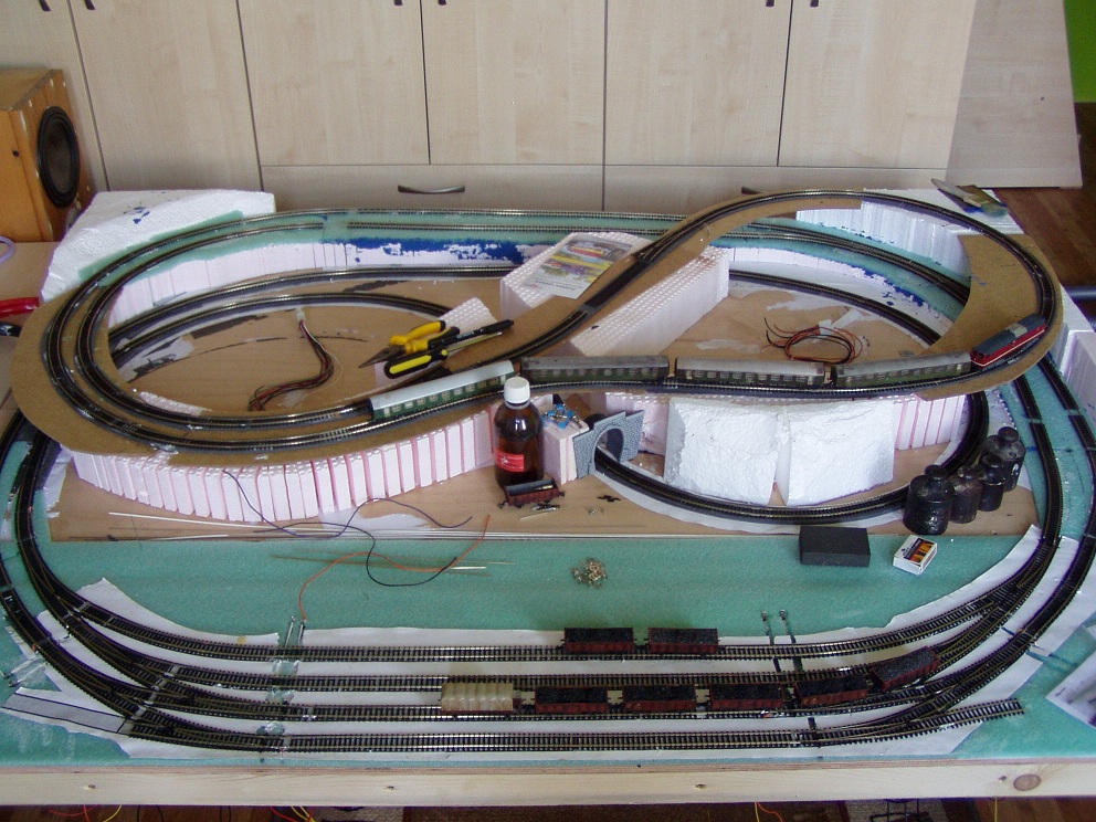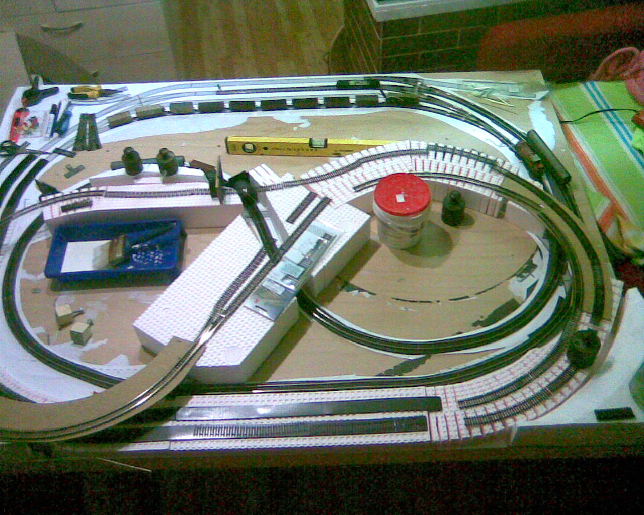 Tak už mám skoro hotovo.Koleje položeny,polovina vyhybek EW2 už funguje.Ještě musím doladit to nápajení srdcovek.