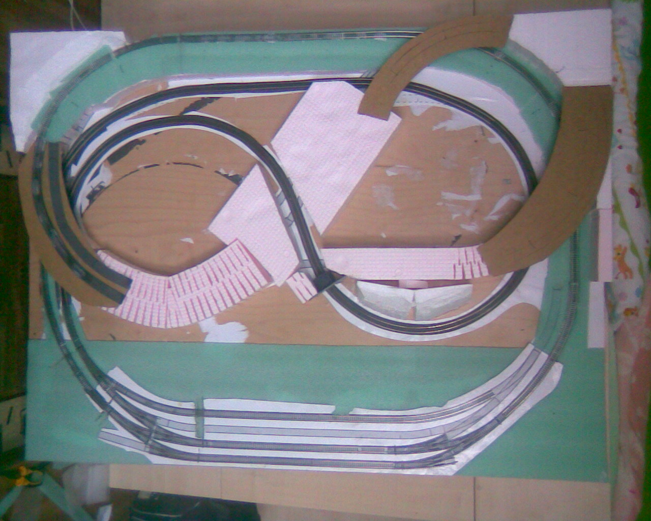 Tome jak jsi to nakreslil na obrázek, tak stejně tak si to narýsuj fixkou na ten polystyrén a vem to podle ruky.. Pokud někde trochu podjedeš, tak se nic nestane - počítám, že na poliš budeš dávat korkové pásy a na ně lepit koleje z metrových prutů - tak jestli někde budeš mít nerovnost v podobě podjetí řezačkou, tak to zas tolik vadit nebude... Taky jsem to tak dělal a vlaky jezdily bez problémů: