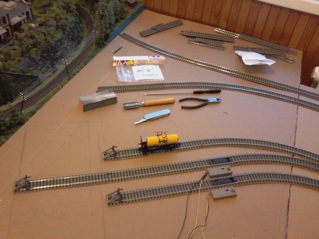 Přivezl jsem si včera izolační spojky,tak jsem dnes vytvořil ve staničce izolované úseky a natáhl dráty k nim dráty včetně napájení stanice,tedy zatím jen na čelo dílu. :D Taky jsem odizoloval vratku ve SN a vyzkoušel zbrusu novou žilpilku. :D