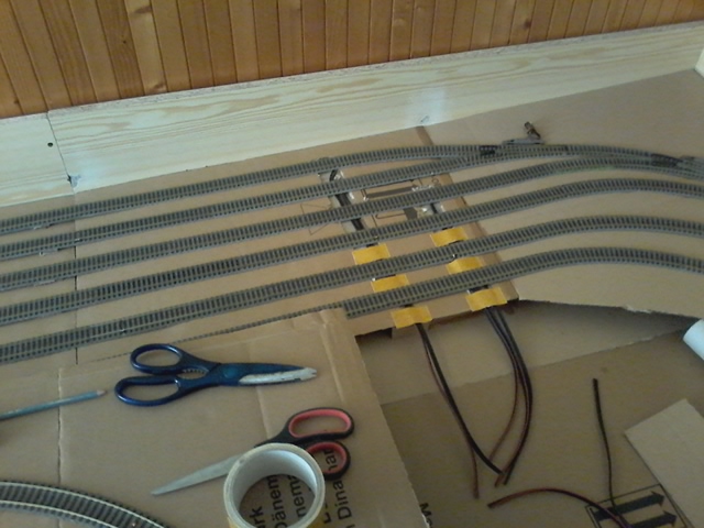 Tak dobrá zpráva je,že přechodový úsek mohu udělat tak,jak jsem zamýšlel původně. :idea: Vejde se tam v pohodě 5-ti vozový rychlík s BR 39. :D Snad nebude dělat bordel to dvojí přerušení,které tam musí být z důvodu případného vyjmutí dílu. :?