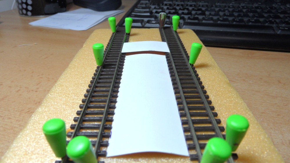 Dusane, diky za tip! Takova, zdalo by se, kravina, ale na minulem kolejisti jsem to resil balsou a pak byl problem se zvlnenim. Ted to udelam podle tebe a pouziju plastovy lenoch (co se pouziva na ZS pri psani do nelinkovaneho sesitu).