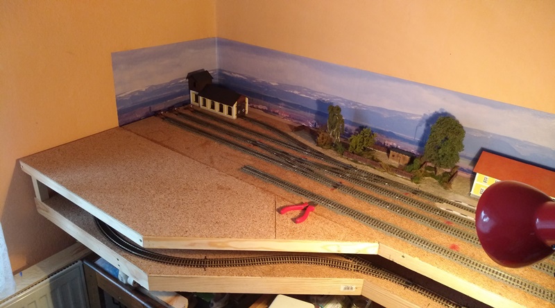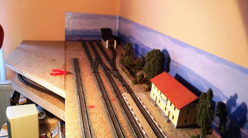 Tady je krásné místo na znázornění továrního dvora. U plotu by mohl být expediční sklad a jedna kolej by mohla, pěkně zapanelovaná, vést přes dvůr do nějaké menší výrobní haly. A aby to bylo jó parádní, vevnitř v hale by mohla být mini přesuvnička na jeden vůz, abys mohl vyměňovat ložené vozy za prázdné. Zkrátka takový návoz materiálu. Přesuvna by ani nemusela být, když bude kolej v hale blízko hrany kolejiště, můžeš náklad z vagonu sundávat např. pinzetou...![]()